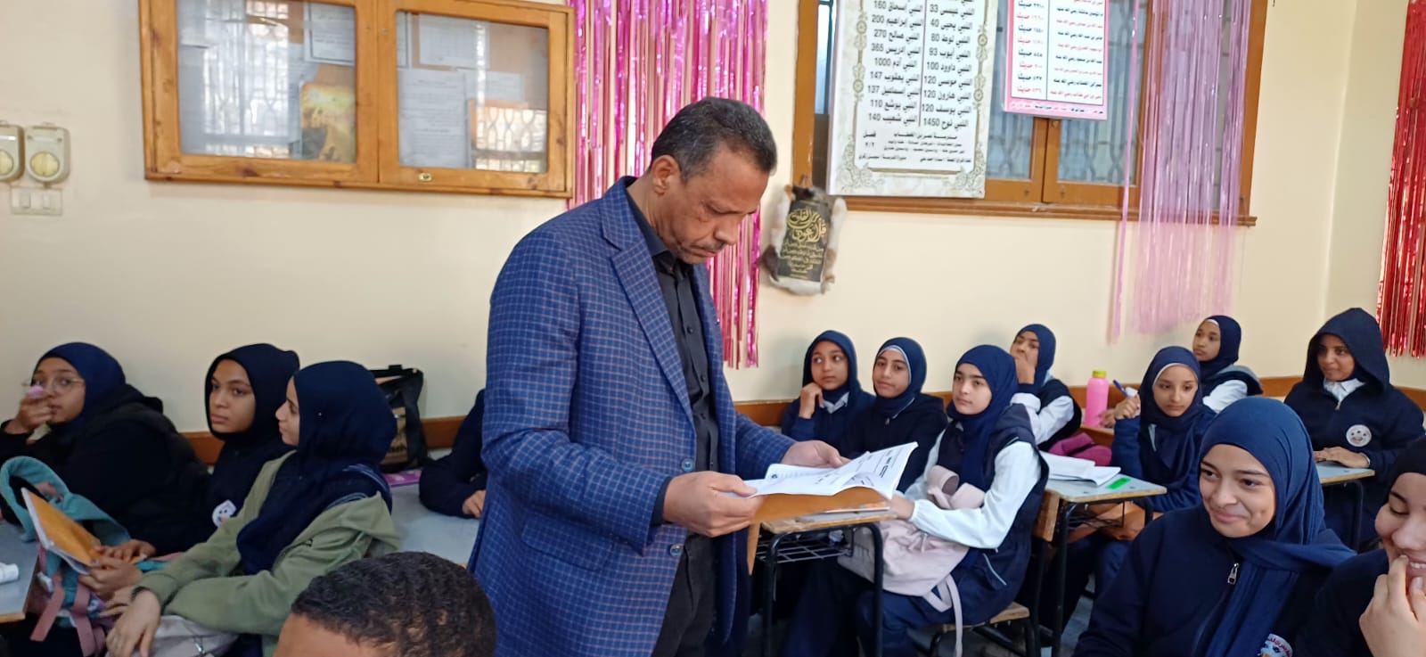 تكريم طلاب مبادرة «أجمل فصل» خلال جولة ”مدير تعليم أبو تشت ” بمدرسة عمر بن الخطاب الإعدادية