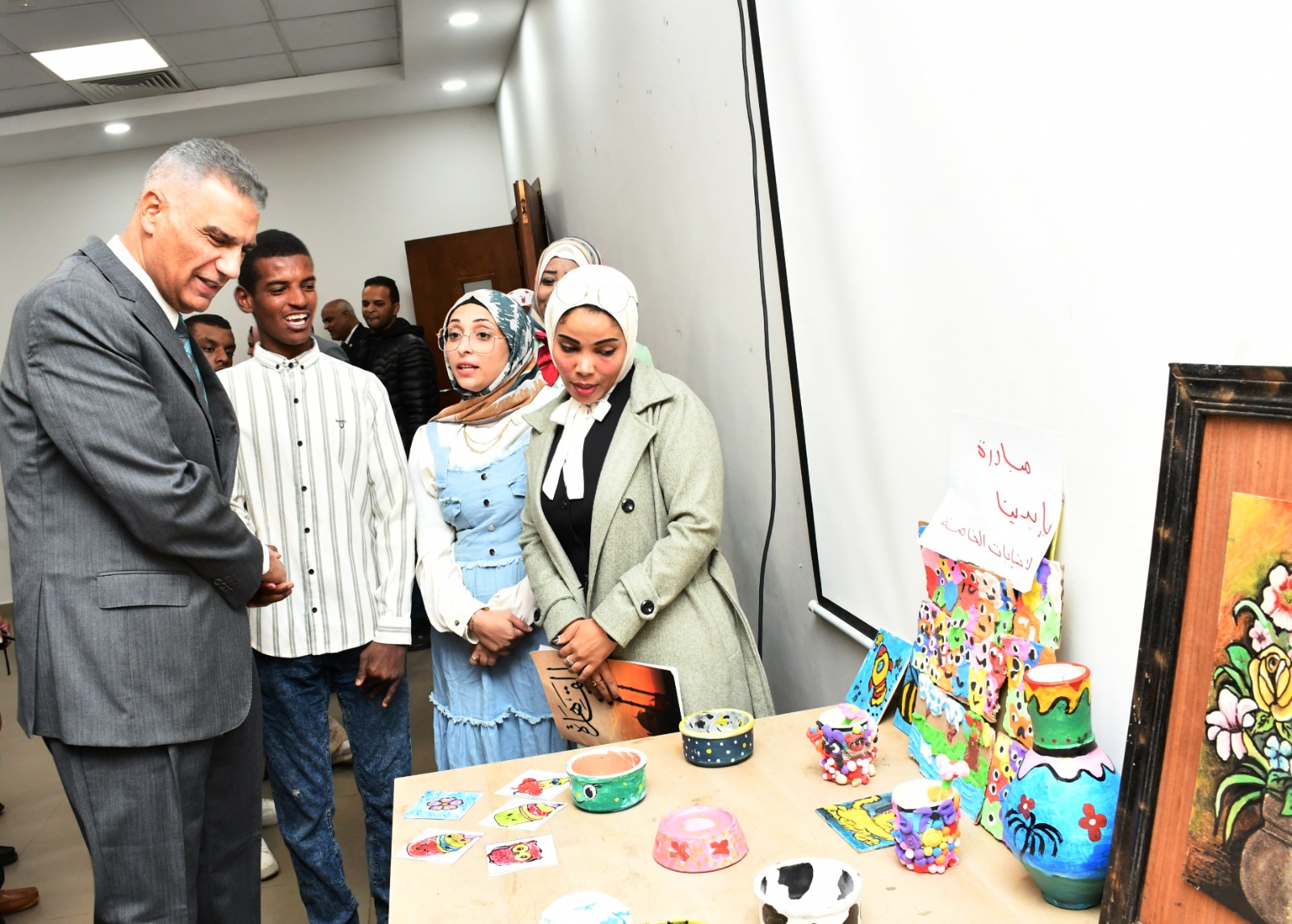 وعقب ذلك افتتح المحافظ، معرض المشغولات والمنتجات اليدوية ، والذى ضم باقة متميزة من الأعمال الفنية والإبداعية التى تعبر عن طاقات ومواهب ذوى القدرات الخاصة ، وتؤكد قدرتهم على العطاء والإبداع