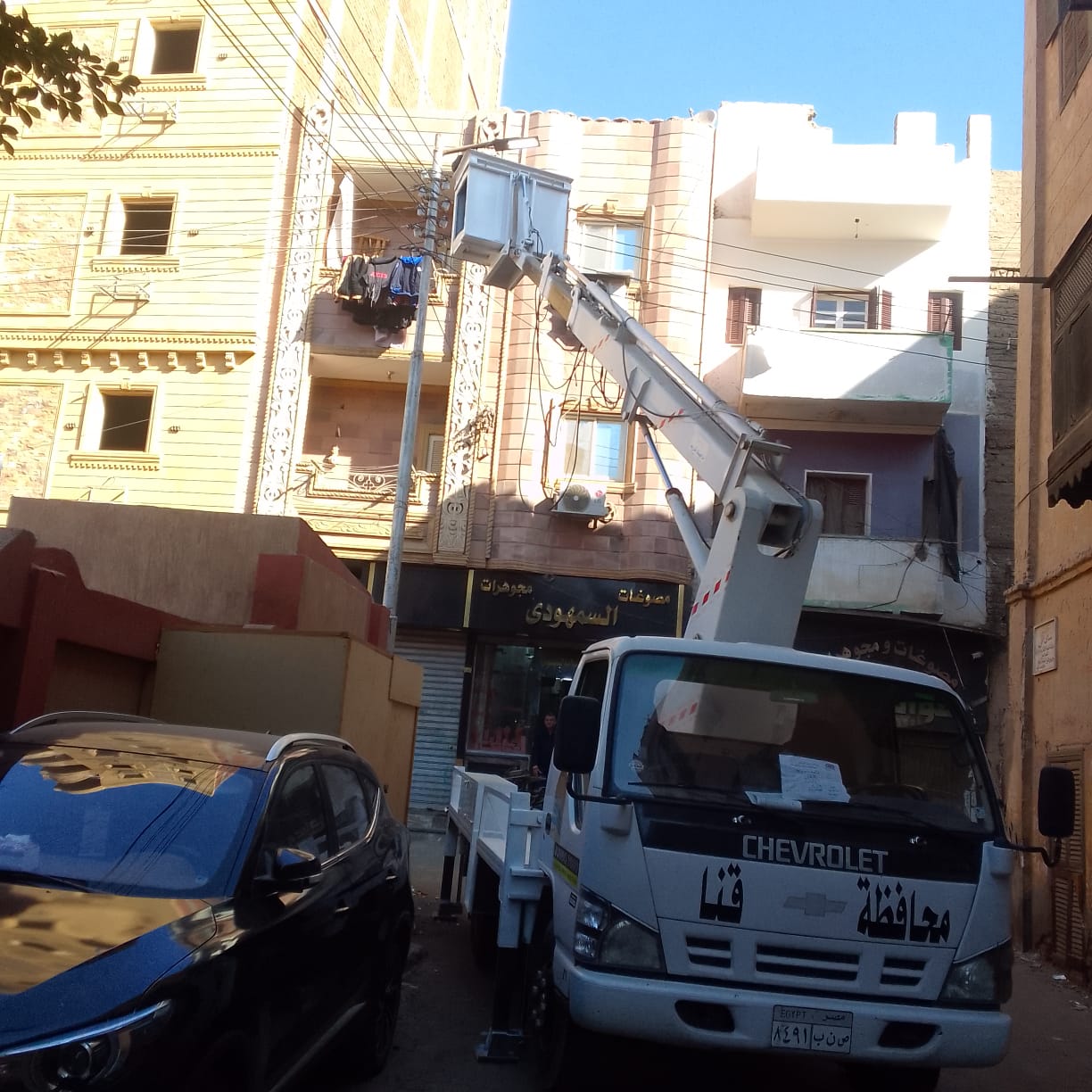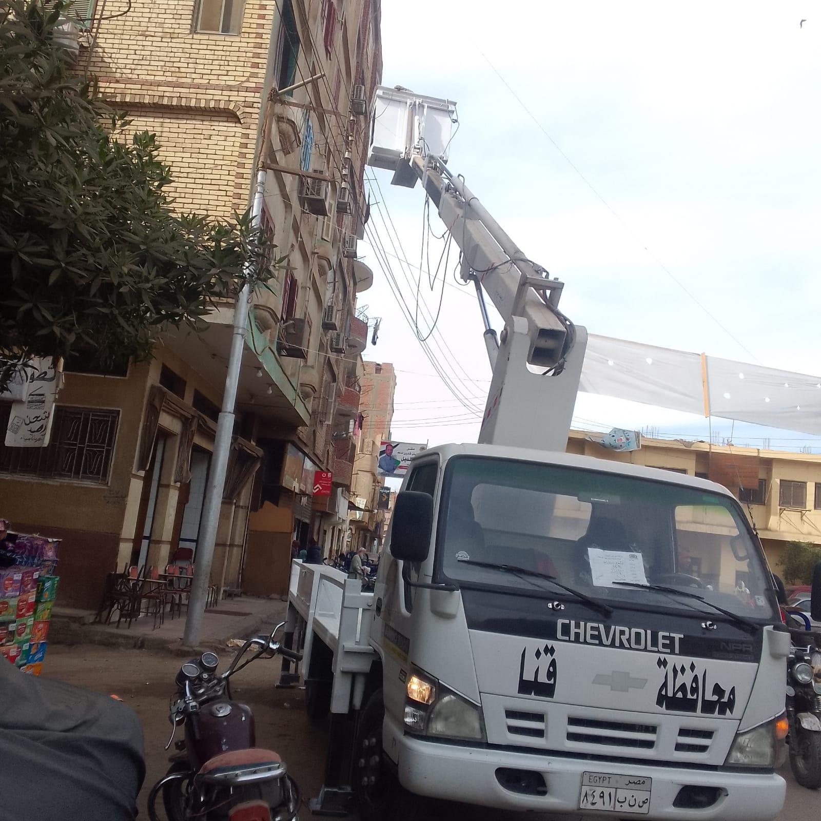 استمرار أعمال صيانة كشافات الإنارة ورفع كفاءة الطرق بـ ”نجع حمادي ”