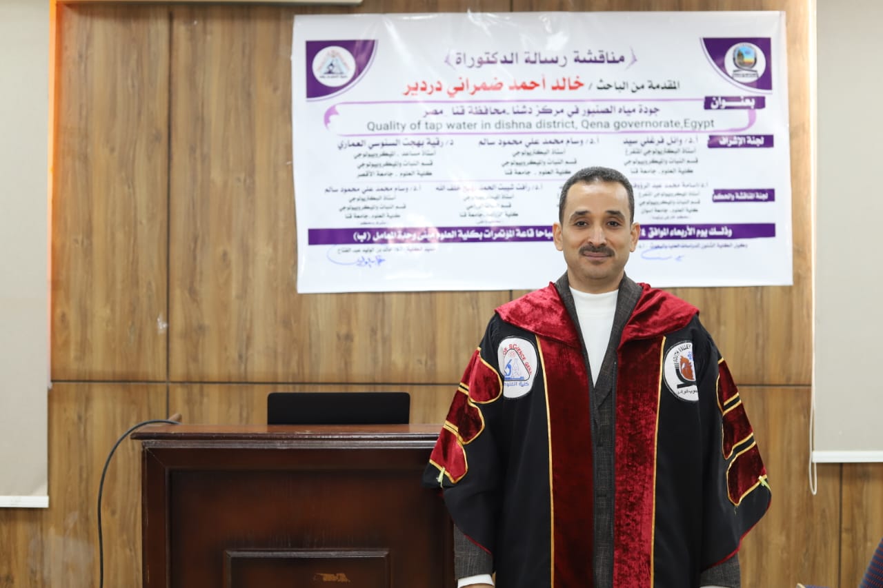 مناقشة رسالة دكتوراه بكلية العلوم بجامعة قنا حول جودة مياه الصنبور بمركز دشنا