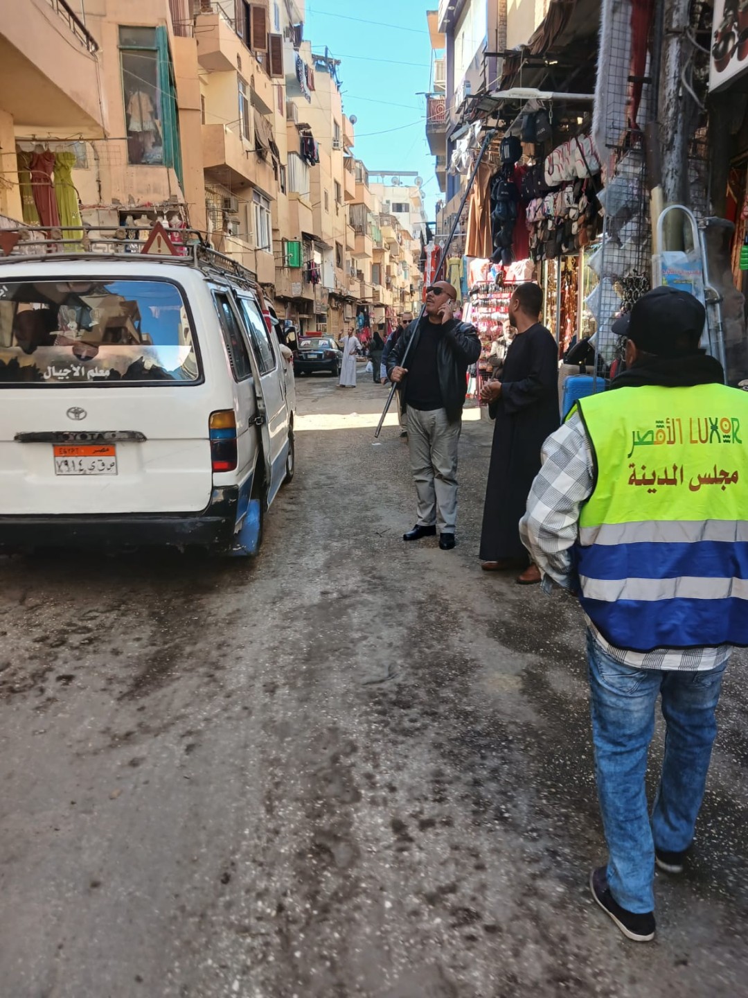 مدينة الأقصر تنفذ حملة مكبرة لرفع الإشغالات بشارع مدرسة الصنايع .. وإزالة سور مخالف في المهد بحوض أبو عوض.
