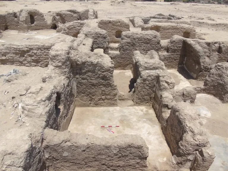 يأتي ذلك، في إطار أعمال الحفائر الأثرية الجارية بالموقع، حيث تم الكشف عن بقايا مبانٍ شُيِّدت من الطوب اللبن.