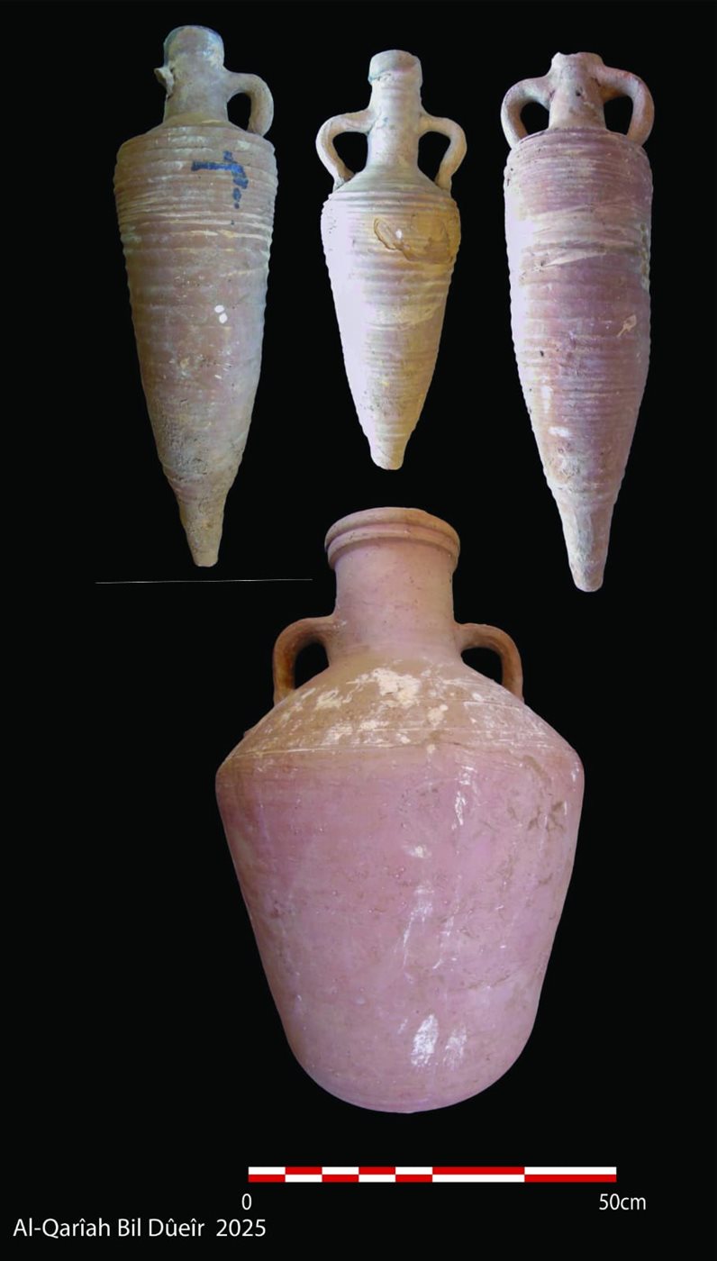 وأوضح وليد السيد، رئيس البعثة الأثرية، أن البعثة عثرت بالموقع على عدد من اللقى الأثرية، من بينها أمفورات كانت تُستخدم في التخزين، تحمل بعضها كتابات يُحتمل أن تكون حروفًا أو أرقامًا أو أسماء مدونة على أكتافها، إلى جانب مجموعة من الأوستراكات تحمل كتابات باللغة القبطية، وعدد من أدوات المعيشة، وكسَر حجرية تمثل أجزاء من عناصر معمارية، بالإضافة إلى أجزاء من لوحات من الحجر الجيري منقوش عليها كتابات بالخط القبطي.