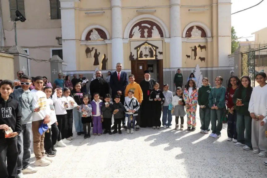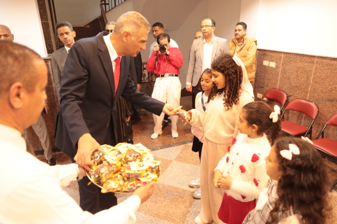 محافظ أسوان يوزع كروت تهنئة الرئيس والهدايا على الأطفال بمناسبة عيد الميلاد المجيد