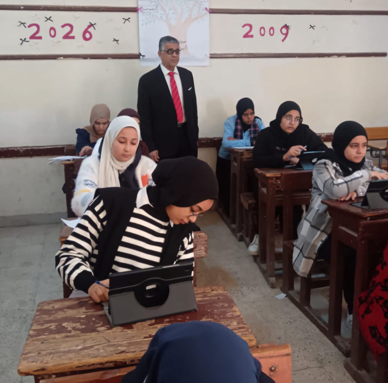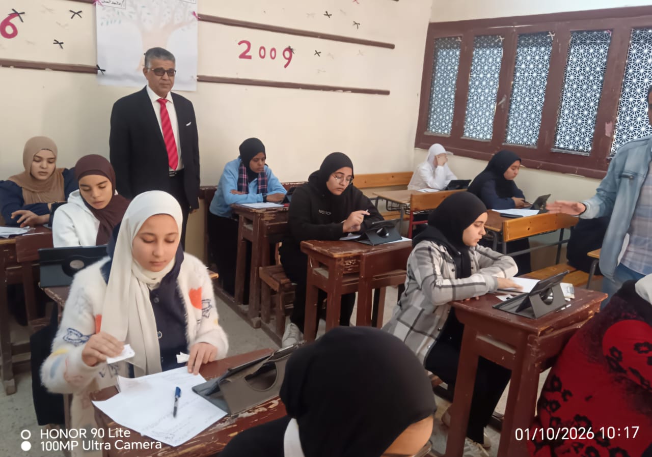 وخلال الجولة، اطمأن وكيل الإدارة ، على تنفيذ كافة التعليمات والقرارات الوزارية الخاصة بأعمال الامتحانات، حيث يؤدي طالبات الصف الثاني الثانوي، وعددهن 425 طالبة منتظمة و52 طالبة منازل، امتحانات مادتي اللغة العربية والرياضيات عبر منظومة التابلت، وفق الجداول الرسمية المعتمدة وتعليمات وزارة التربية والتعليم.