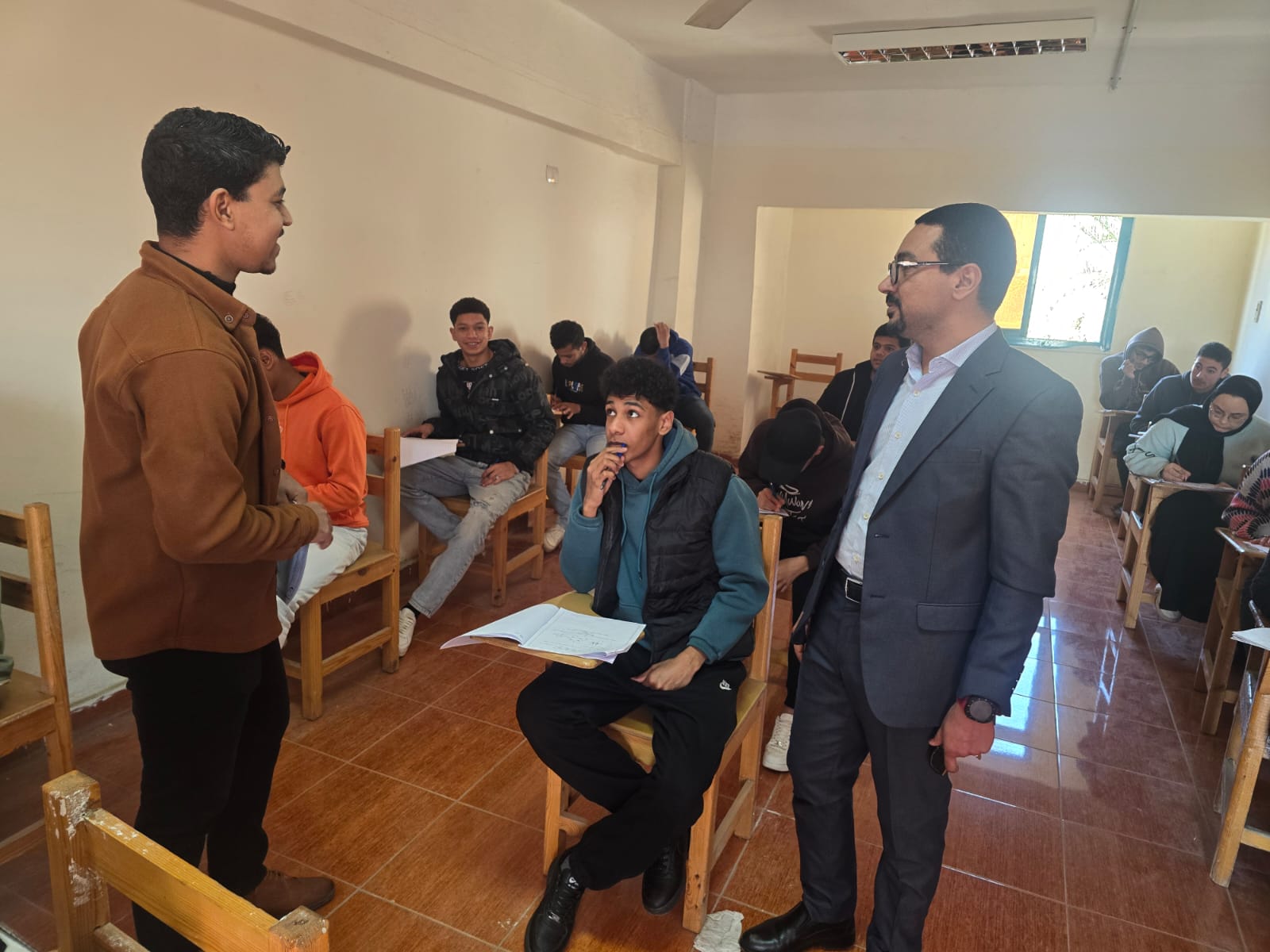وتابع الدكتور عيسى حجازي، سير العملية الامتحانية ميدانيًا، مؤكدًا حرص إدارة المعهد والجامعة على تهيئة مناخ ملائم داخل اللجان، واتخاذ جميع التدابير اللازمة لضمان بيئة آمنة للطلاب، وحسن سير العملية التعليمية، وفقًا للقواعد واللوائح المنظمة للامتحانات.