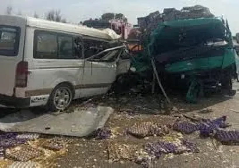 إصابة 11 شخصا في تصادم سيارة نصف نقل وميكروباص بالطريق الصحراوي الغربي بـ المنيا