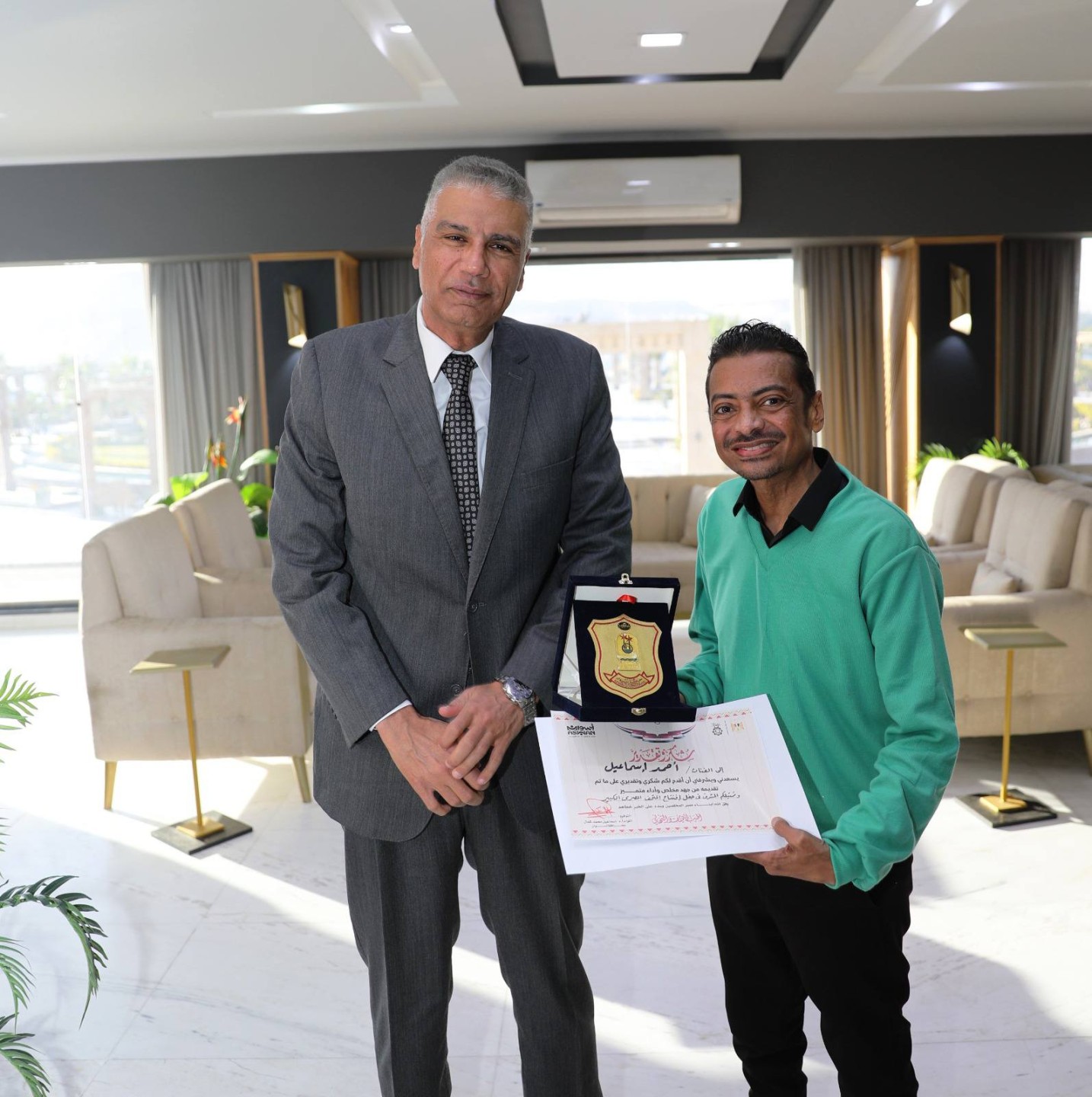 محافظ أسوان يكرم الفنان النوبى أحمد إسماعيل تقديراً لموهبته وتمثيله المشرف للمحافظة