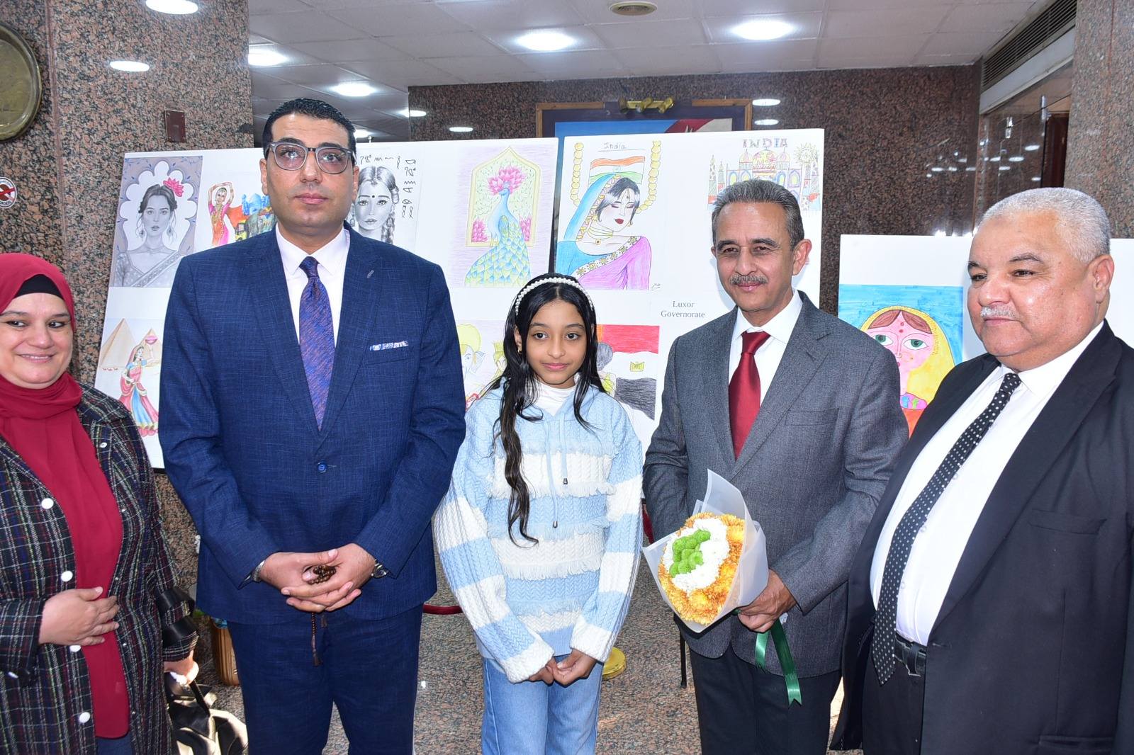 وخلال فعاليات الحفل، تم تكريم 15 طالبًا وطالبة من أبناء محافظة الأقصر، ممن حصلوا على مراكز جمهورية متقدمة في المسابقة التي ينظمها مركز مولانا آزاد الثقافي الهندي، التابع لسفارة الهند بالقاهرة، بالتعاون مع وزارة التربية والتعليم والتعليم الفني، تقديرًا لتميزهم وإبداعاتهم الفنية التي عكست عمق الثقافة الهندية وتنوعها الحضاري.