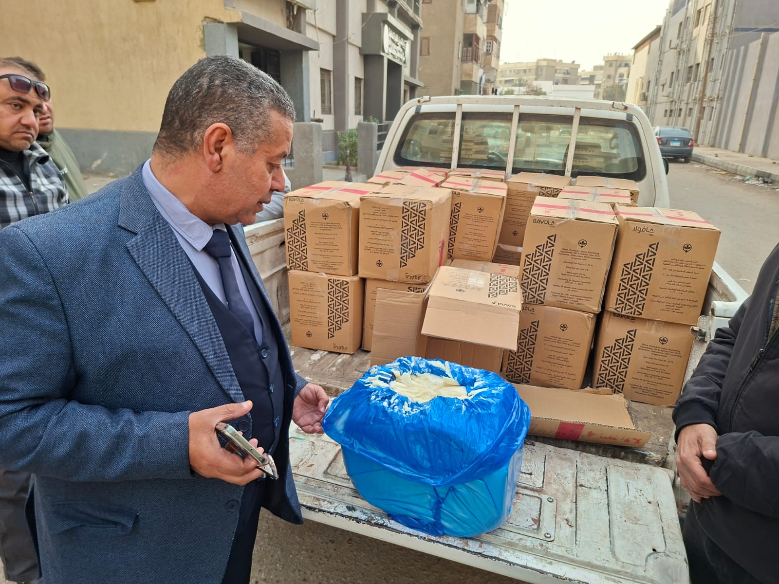 وأسفرت الحملات كذلك، عن ضبط 24 كرتونة زبدة شورتينج مجهولة المصدر زنة الكرتونة 25 كجم بإجمالي 600 كجم داخل أحد المخازن بمركز الفيوم ثان، بالإضافة إلى ضبط 720 كجم زبدة مجهولة المصدر معبأة داخل 12 جوالا على إحدى السيارات، وضبط 160 كجم زبدة مجهولة المصدر.