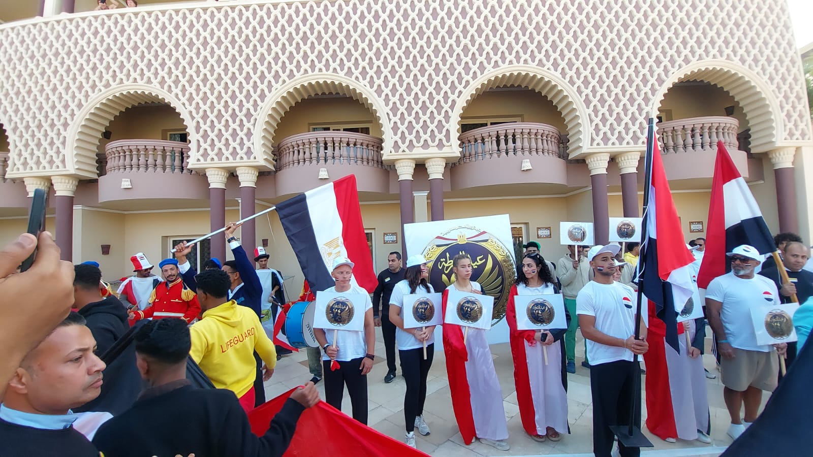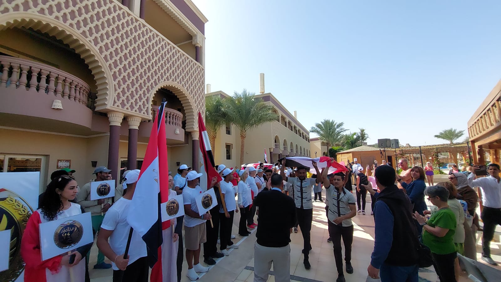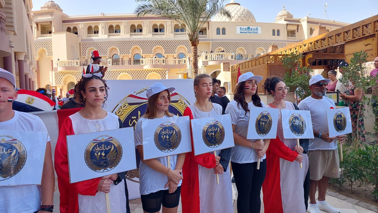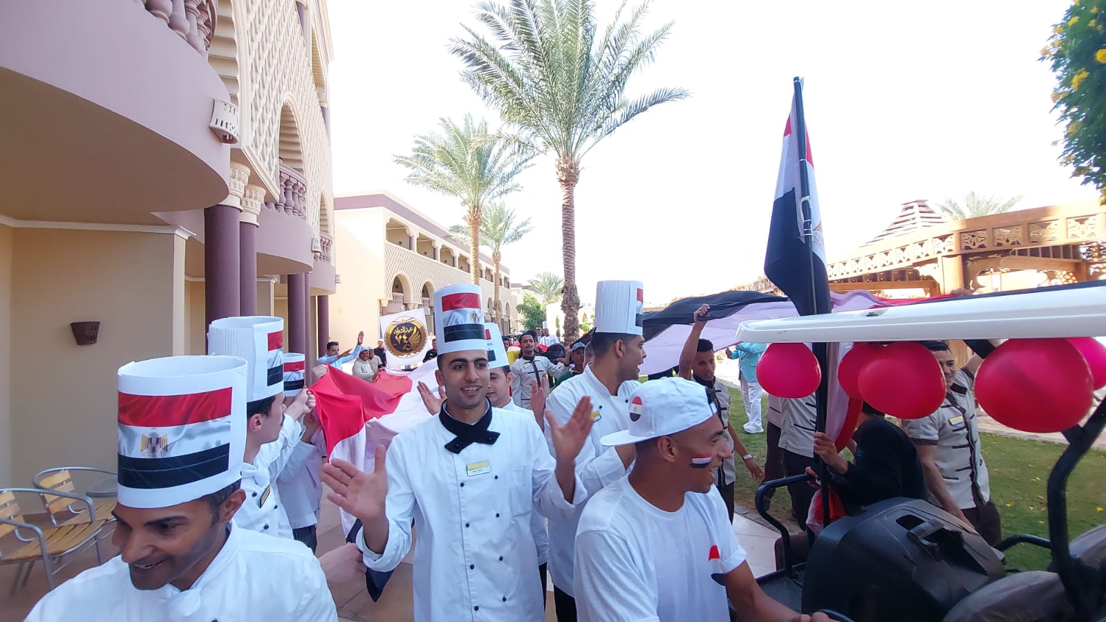 وشهدت الاحتفالات مشاركة من مختلف الجنسيات والاعمار، وحرص السياح على رسم أعلام مصر على وجوههم، كذلك فقرات الاحتفال التى شملت الأغانى الوطنية وعروض فنية لفرق الأنيميشن