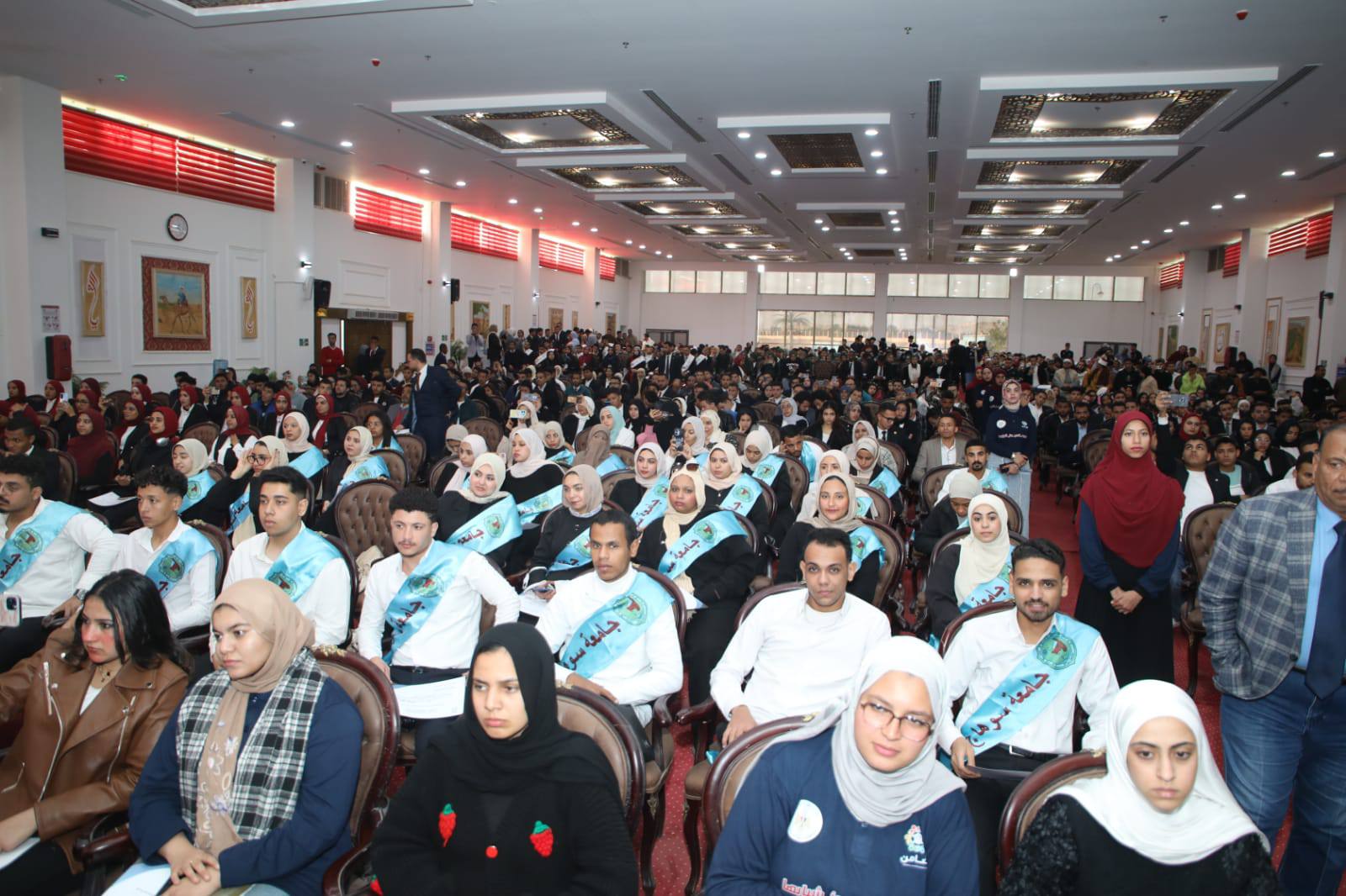 جاء ذلك بحضور، الدكتور محمد العقبي، مساعد وزيرة التضامن الاجتماعي للاتصال الاستراتيجي والإعلام والمتحدث الرسمي للوزارة، والدكتور رجب كامل، نائب رئيس جامعة الوادي الجديد لشئون التعليم والطلاب، والعقيد إيهاب نافع، سكرتير عام المحافظة المساعد، ولفيف من القيادات التنفيذية والشعبية، ووفود طلاب ٢٠ جامعة مصرية.