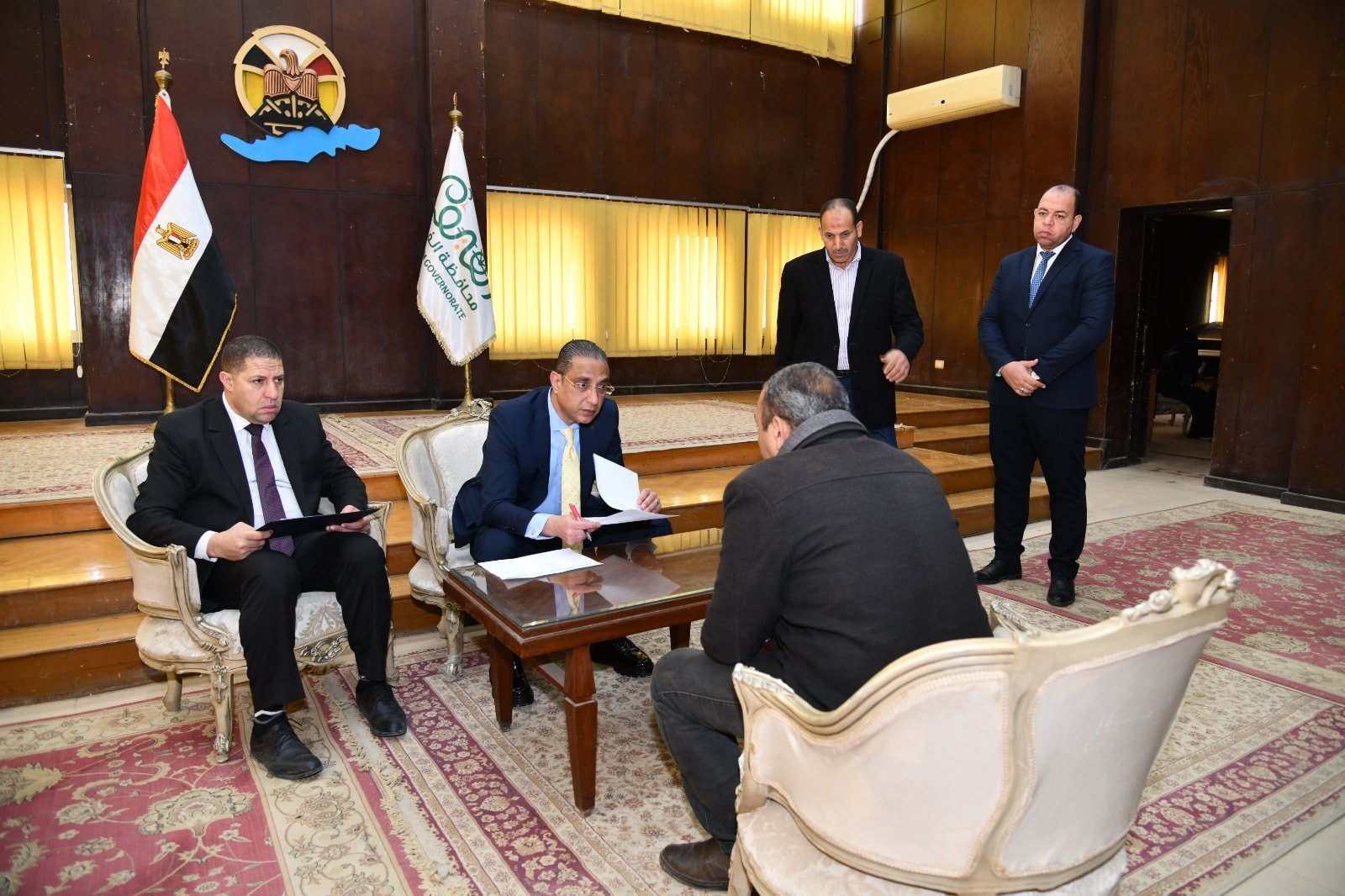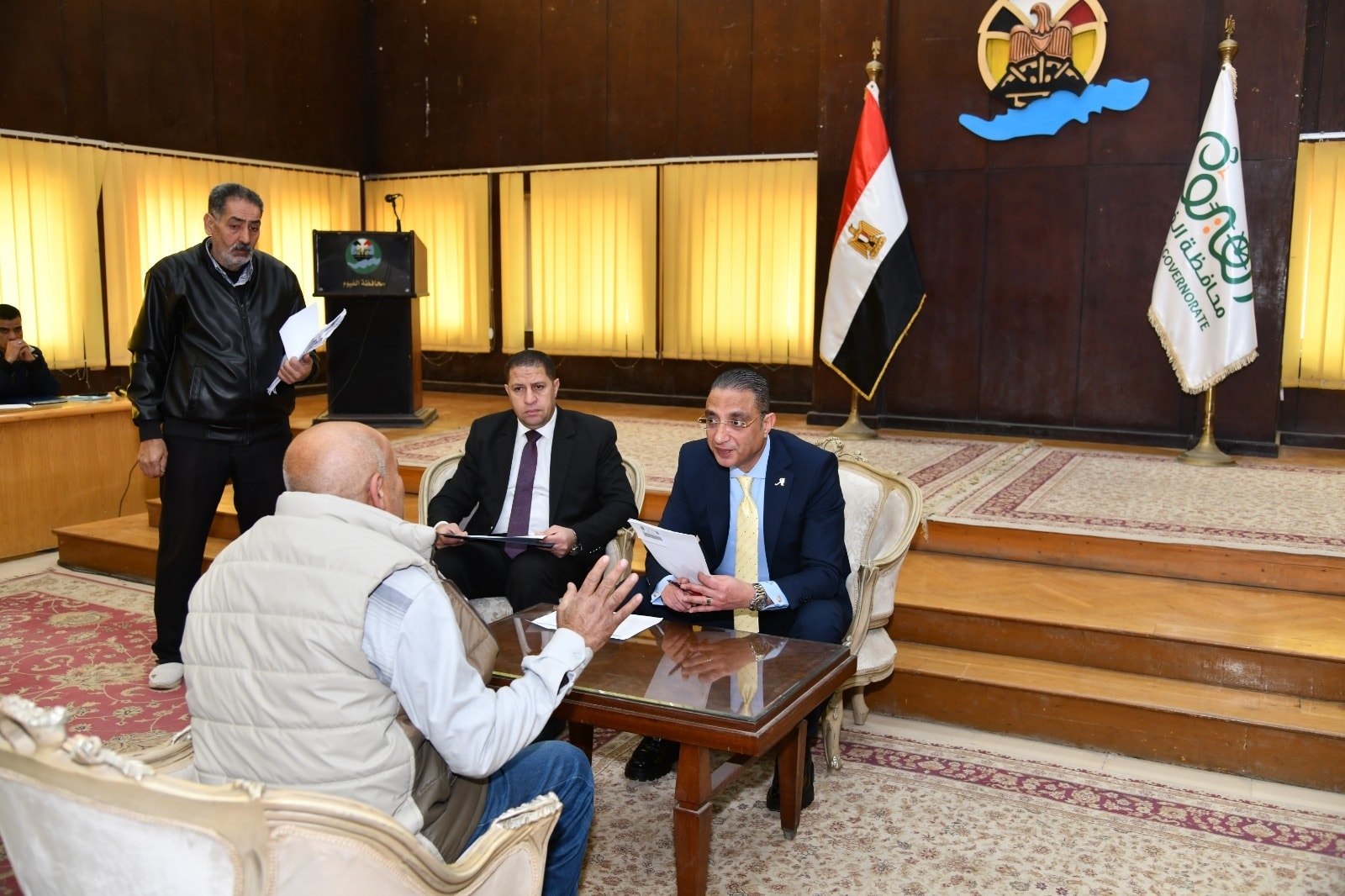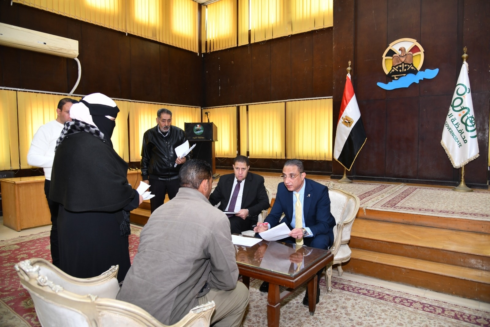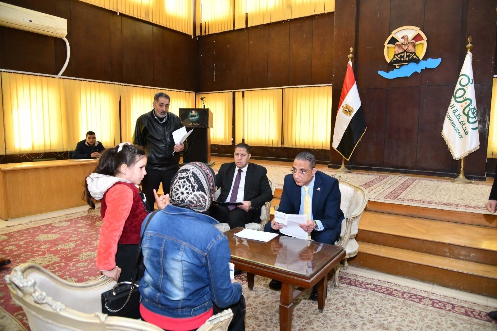جاء ذلك بحضور كامل علي غطاس، سكرتير عام المحافظة، والدكتور خالد قبيصي ، وكيل وزارة التربية والتعليم، والدكتورة نيفين شعبان، وكيل وزارة الصحة والسكان، والمهندس جمعة عبد الحفيظ ، وكيل وزارة التموين والتجارة الداخلية، والدكتور ياسر فوزي، مدير عام فرع الهيئة العامة للتأمين الصحي بالفيوم، والدكتورة شيرين فتحي، وكيل مديرية التضامن الاجتماعي، وسعد عشري، وكيل مديرية العمل، وأشرف درويش، رئيس فرع جهاز تنمية المشروعات المتوسطة والصغيرة ومتناهية الصغر بالفيوم