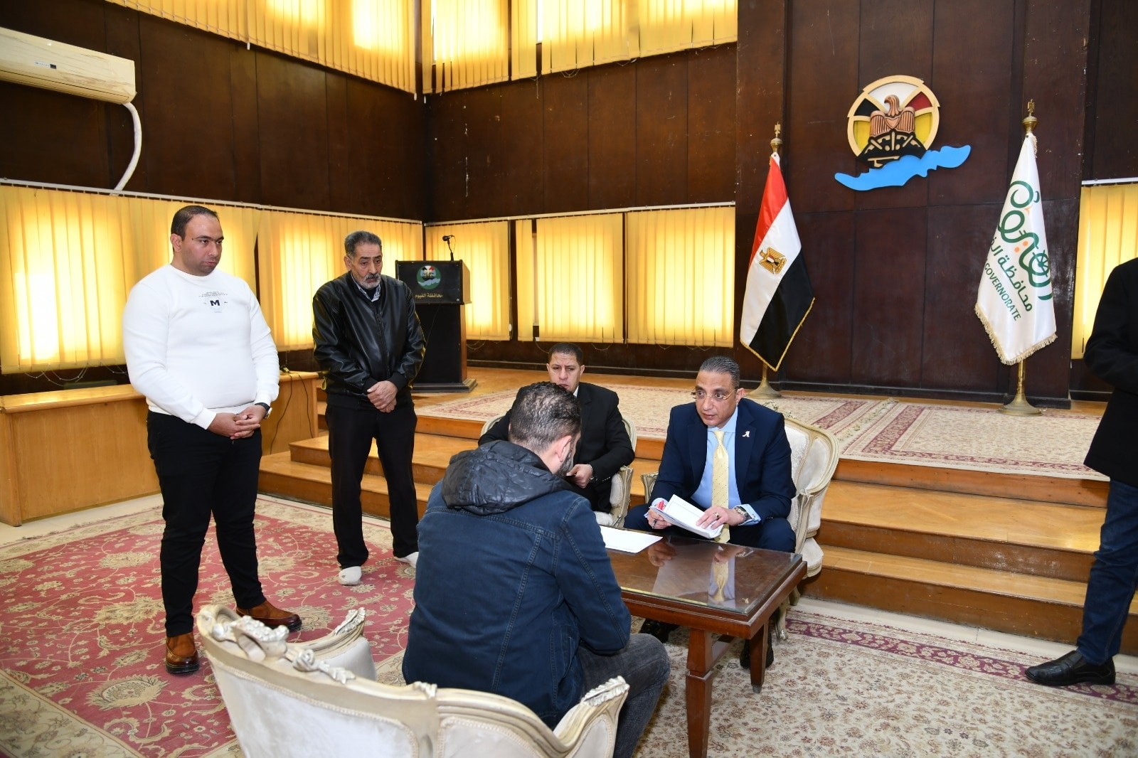 خلال اللقاء، استمع محافظ الفيوم، لمطالب عدد من الشباب والفتيات الراغبين بالعمل في القطاع الخاص، موجهاً وكيل مديرية العمل، بسرعة توفير فرص عمل لهم بشركات ومصانع ومؤسسات القطاع الخاص، تبعاً لمؤهلاتهم العلمية وخبراتهم الحياتية وظروفهم المعيشية، مشدداً على متابعة العمالة الخاصة بمختلف المؤسسات والشركات والمصانع، للتأكد من عمل الشباب والفتيات بها فعلياً، وتقاضيهم للأجور تبعاً للشروط والقوانين المنظمة لذلك، بهدف الإنتقال بهم من مرحلة المساعدات المباشرة، إلى مرحلة العمل والإنتاج المستمر والاعتماد على النفس