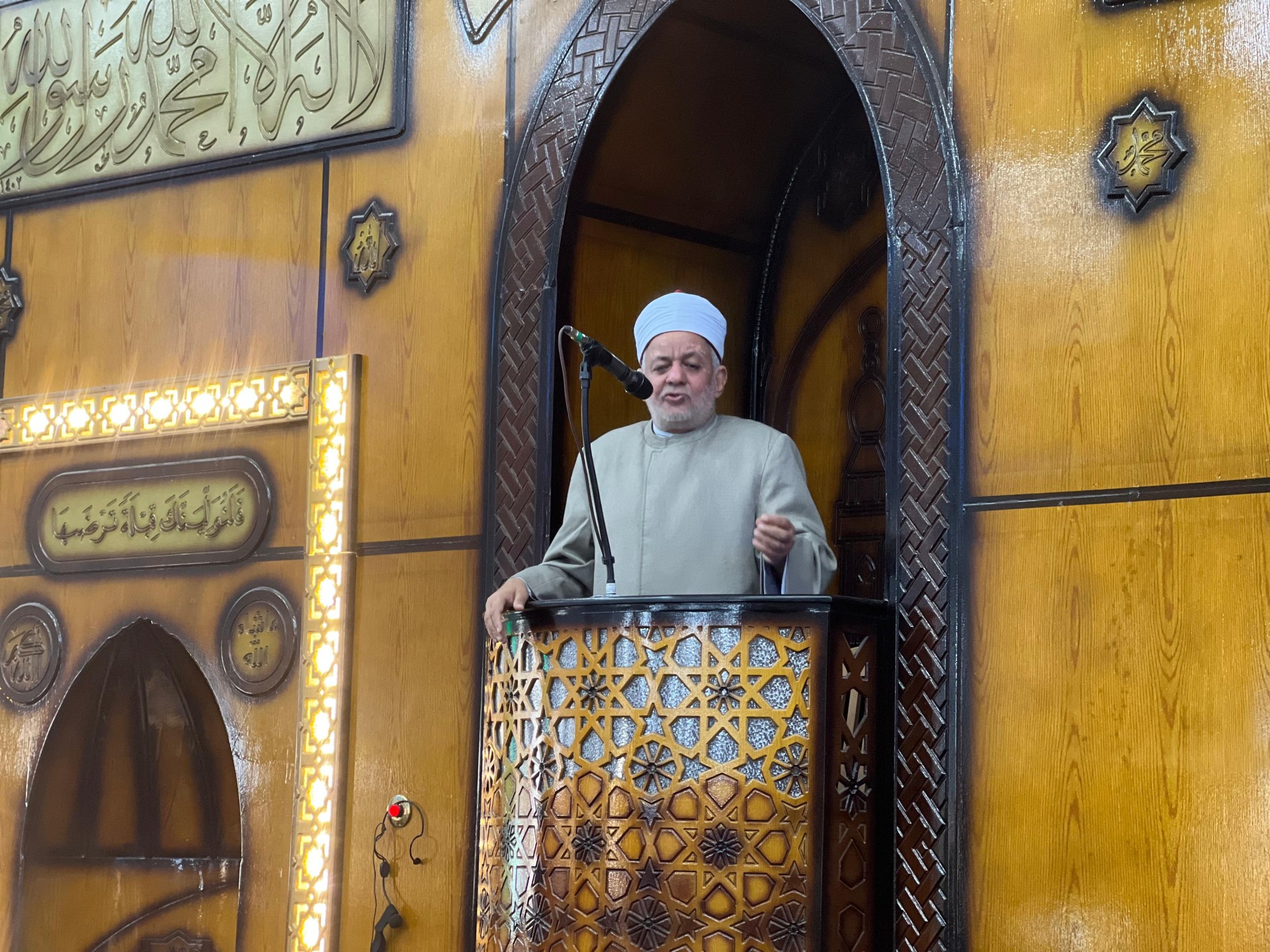 واستمع الحضور، إلى خطبة الجمعة، بعنوان "بطولات لا تنسى وتحويل القبلة"، والتي تناولت الدروس والعبر المستفادة من المواقف البطولية في تاريخ الأمة الإسلامية، وأن تحويل القبلة يمثل نموذجًا خالدًا للطاعة المطلقة لأوامر الله ورسوله، وما يحمله من معانٍ راسخة في الإيمان والانضباط واليقين.
