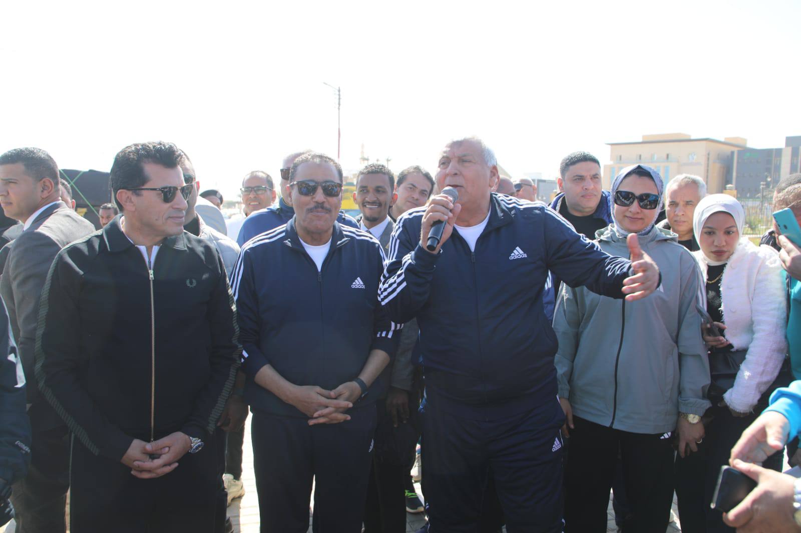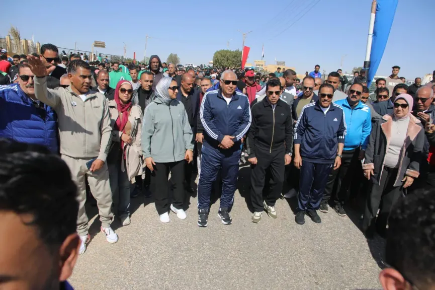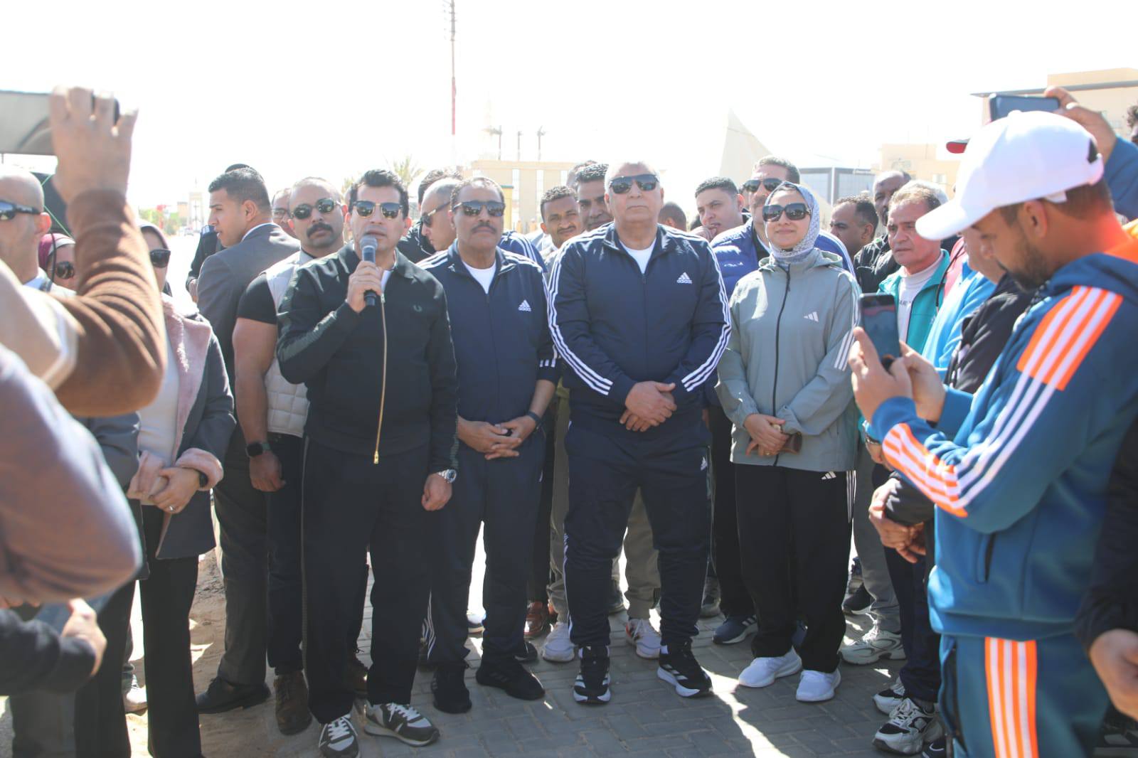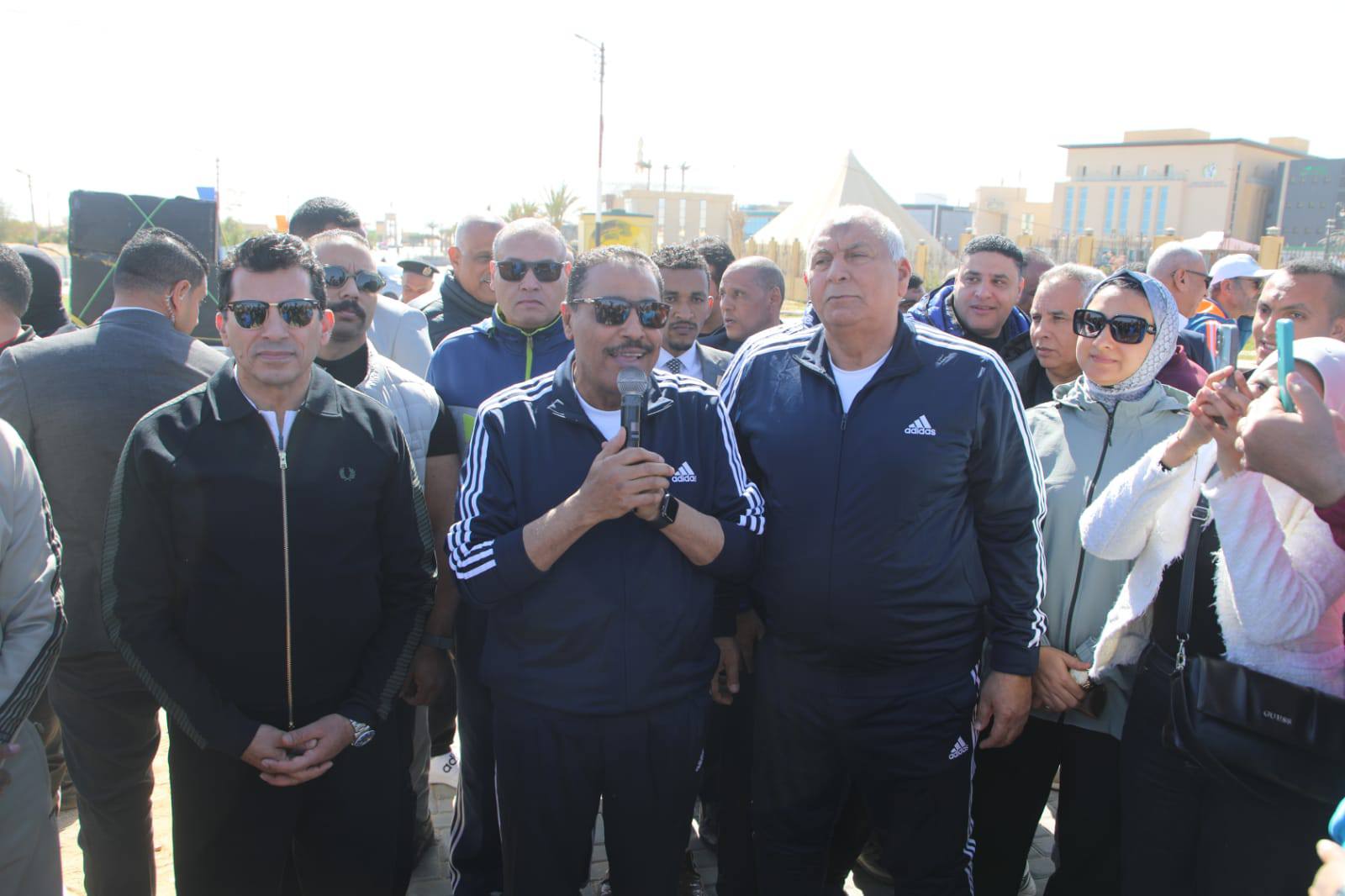 وزير الشباب والرياضة ومحافظي الوادي الجديد ومطروح يتقدمون مسيرة رياضية لشباب المحافظات الحدودية