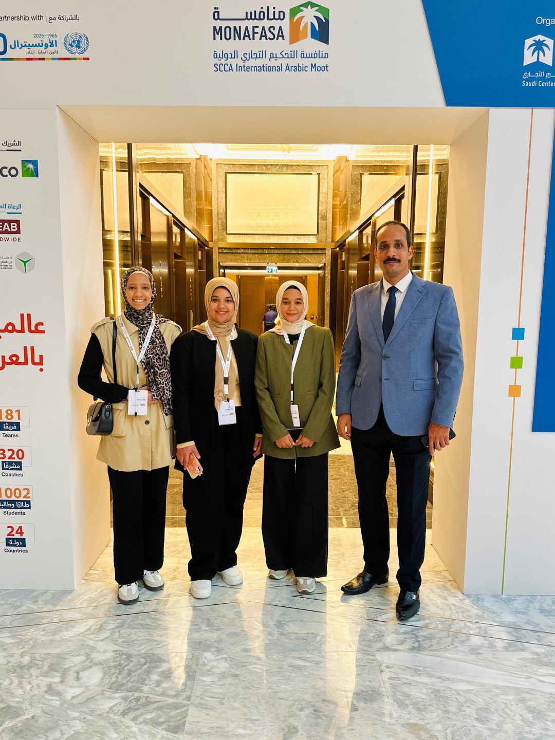 وتمكنت الطالبات من اجتياز مراحل التصفيات المختلفة للمنافسة، والتي شملت إعداد المذكرات القانونية والمرافعات التحكيمية وفقًا لقواعد ومعايير التحكيم التجاري الدولي، وهو ما أهلهن للمشاركة في المنافسات النهائية الحضورية التي استضافتها العاصمة السعودية الرياض، حيث قدّم الفريق أداءً مشرفًا في جلسات المرافعة المباشرة أمام هيئات تحكيم ضمّت نخبة من الخبراء والمتخصصين.