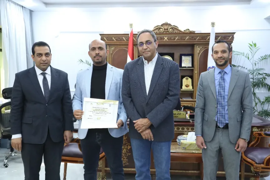 وفي نفس السياق، قام محافظ قنا، بتكريم المهندس فيلوباتير عصام راضي شطبي، نظرًا لجهوده المبذولة في تطوير المنظومات الإلكترونية بديوان عام المحافظة.
