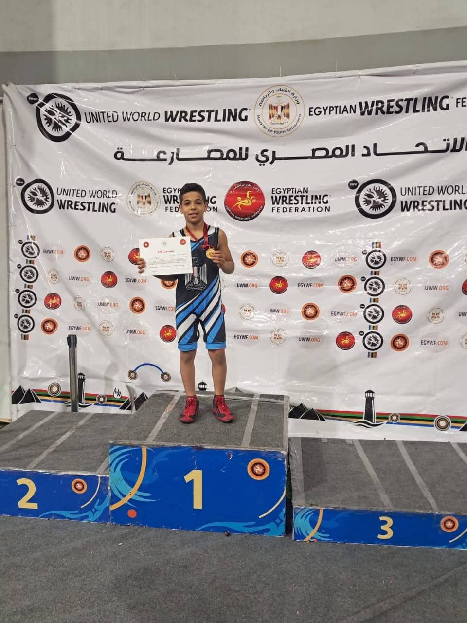 وليد عبد الرحمن.. ” إبن أسيوط ” يفوز بذهبية بطولة الجمهورية للمصارعة للبراعم