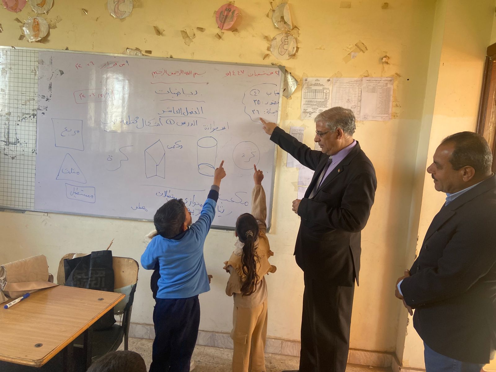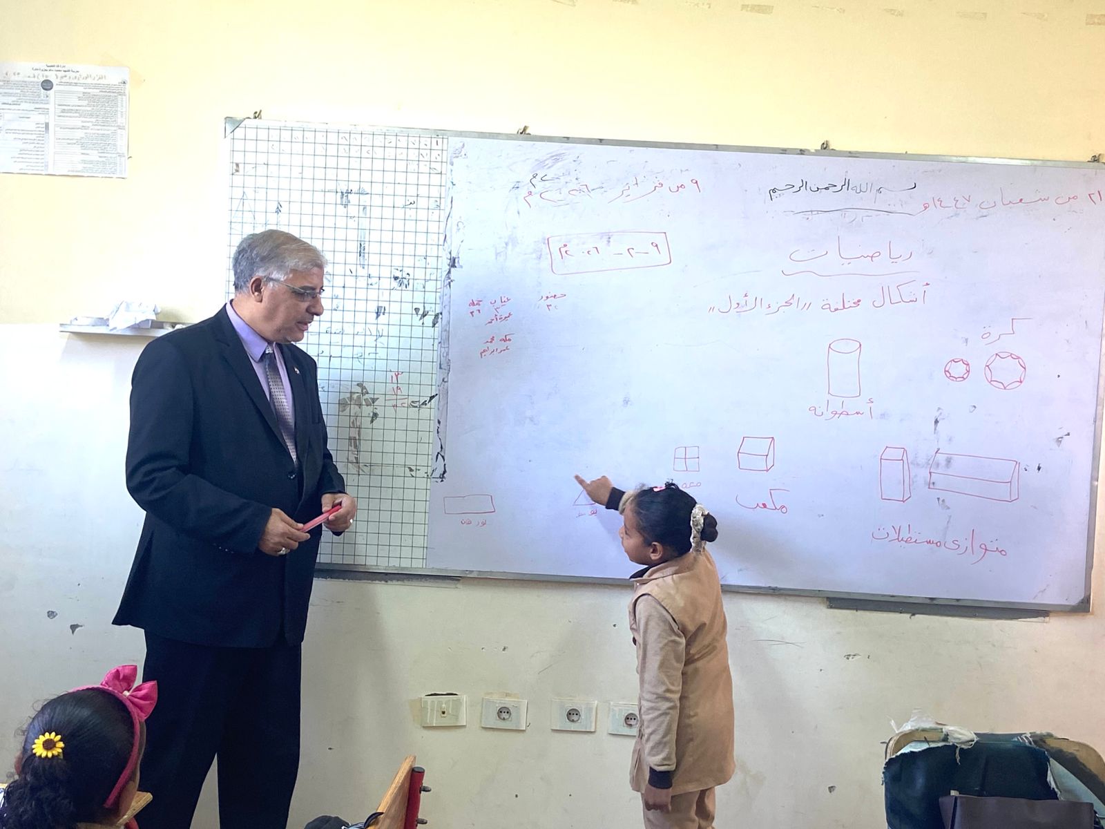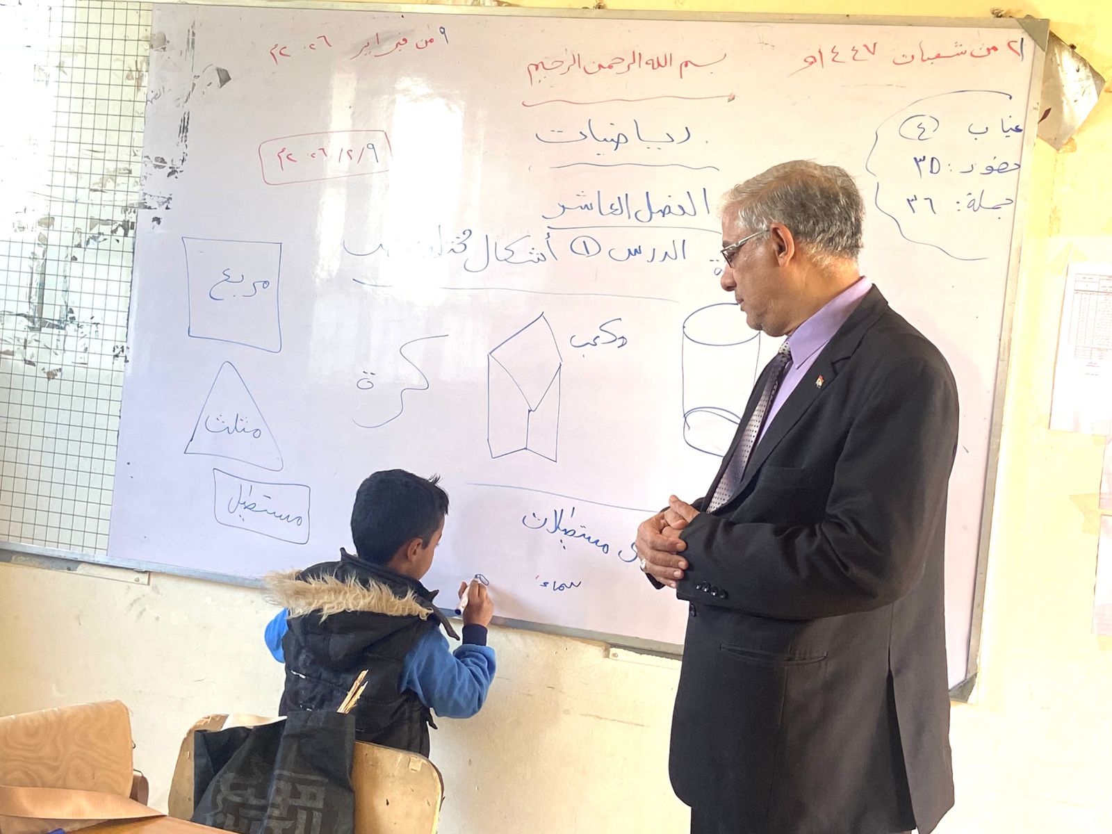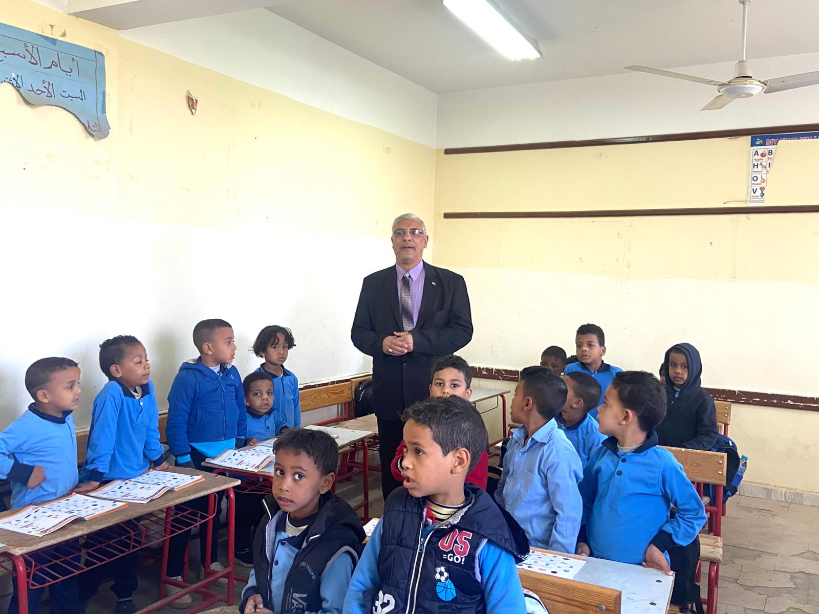 وتابع وكيل الوزارة سير العملية التعليمية داخل الفصول، واطّلع على المستوى العلمي للطلاب في مهارات القراءة والكتابة، ومدى التزامهم بكراسات الحصة والواجبات المدرسية، والتقييمات الأسبوعية، كما تفقد المكتبة المدرسية وفصول مرحلة رياض الأطفال.