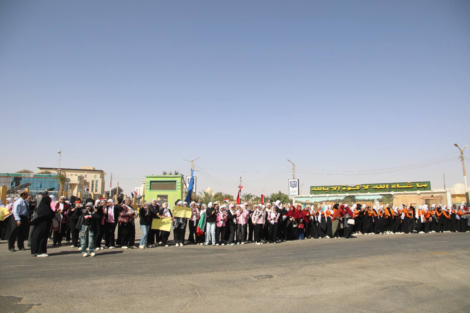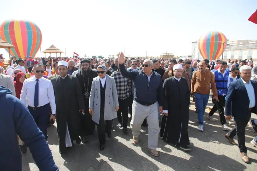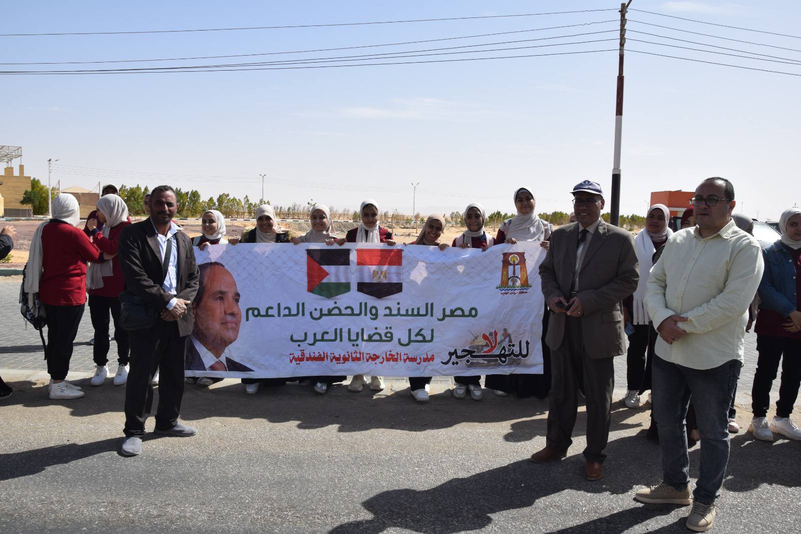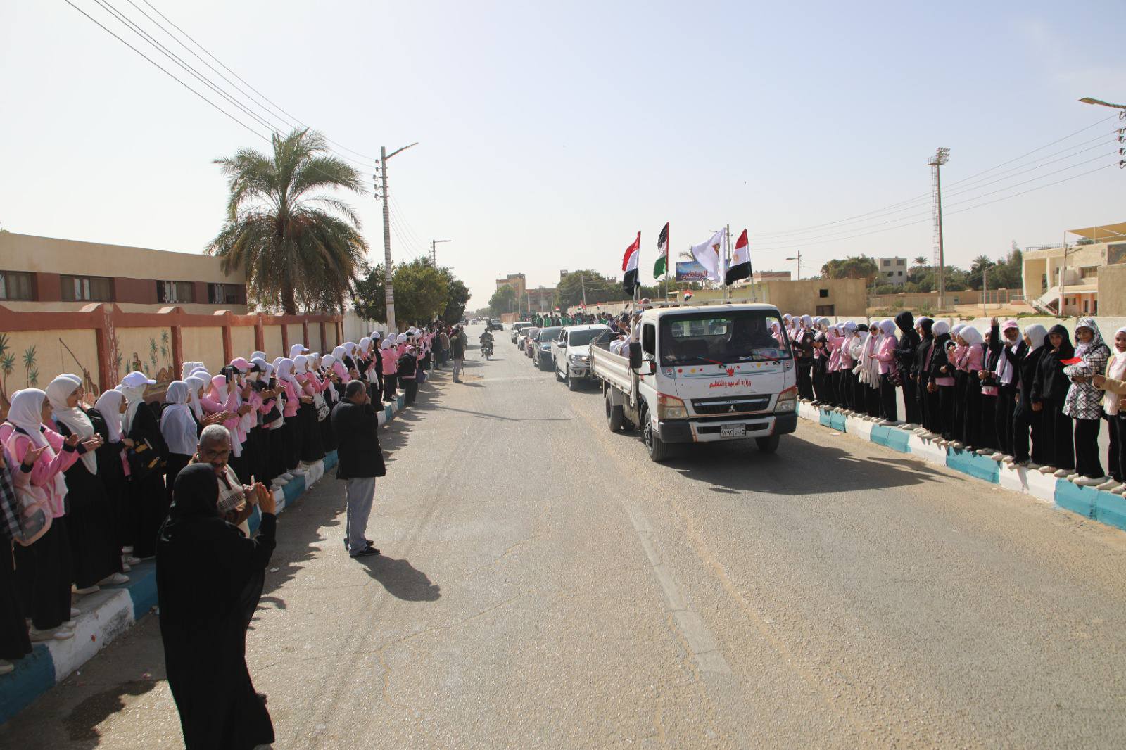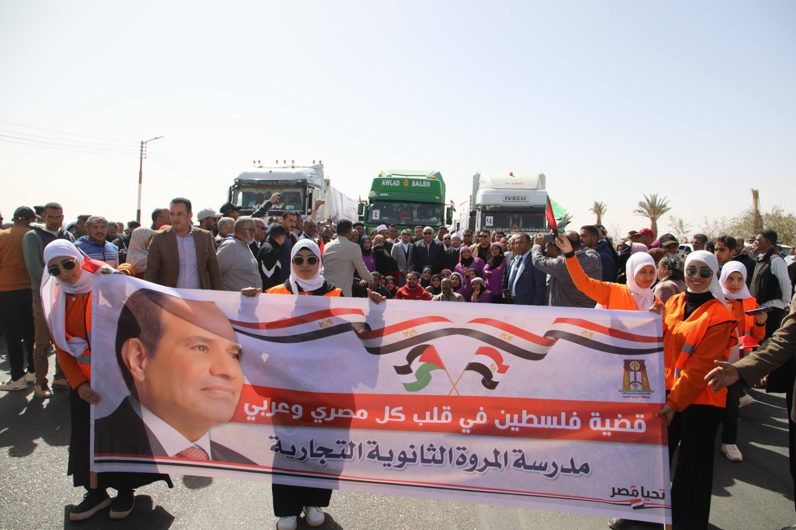 في مسيرة شعبية .. محافظ الوادي الجديد يدشن ثاني ” قوافل العزة إلى أهل غزة ” .. صور