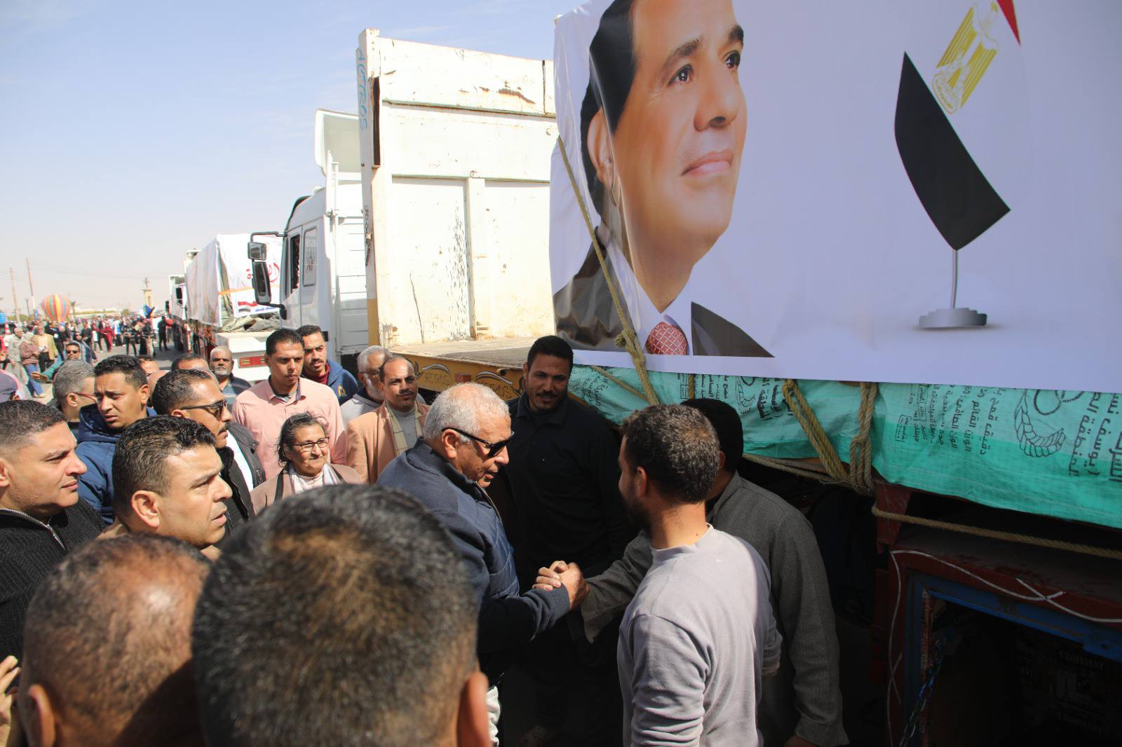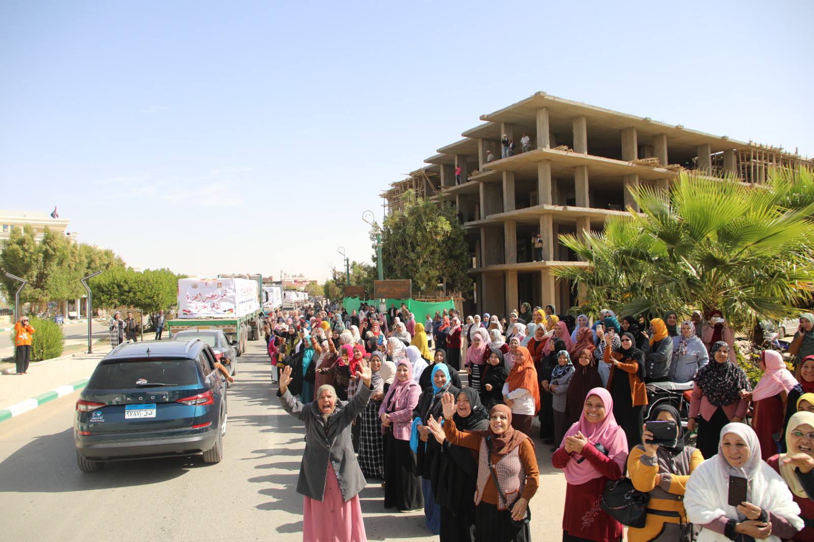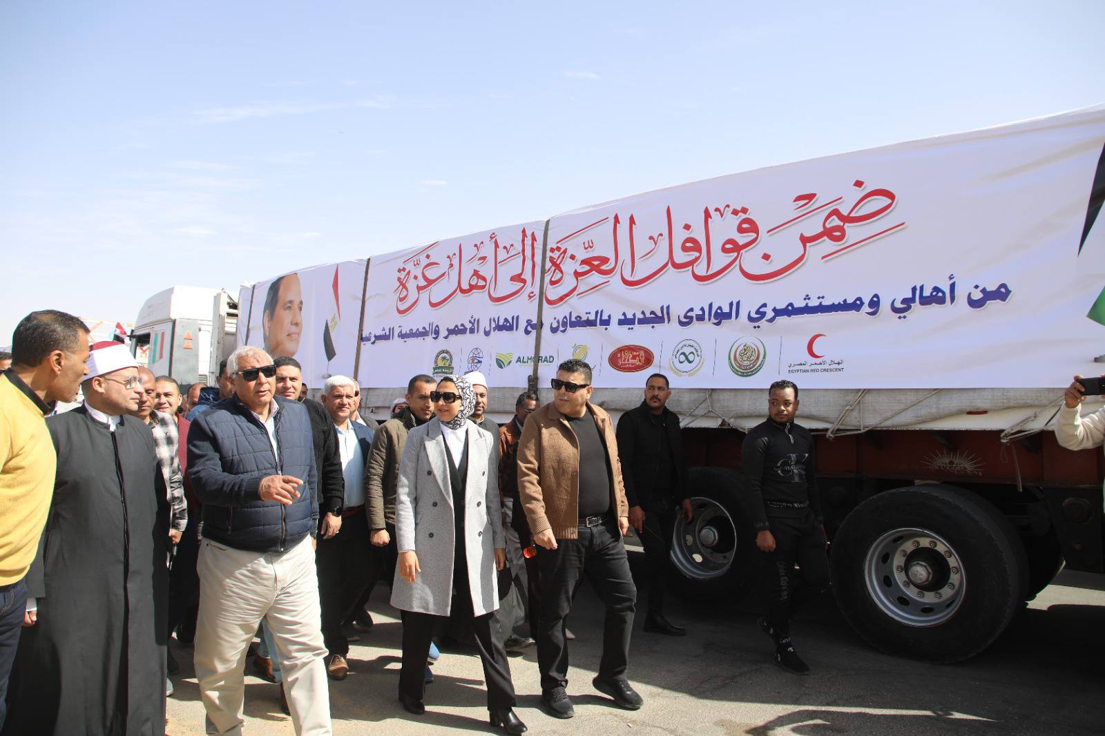 بمشاعر صادقة تعمّق أواصر التآخي والمآزرة، وتحت شعار "ضمن قوافل العزة إلى أهل غزة" انطلق الأسطول الثاني لقوافل المساعدات الإنسانية المتجهة من محافظة الوادي الجديد، إلى قطاع غزة، وسط مسيرةٍ حافلة تقدمها اللواء دكتور محمد الزملوط ،محافظ الوادي الجديد، وحنان مجدي ،نائب المحافظ، والعقيد إيهاب نافع، سكرتير عام المحافظة المساعد، ويشاركُ أجواءها قيادات المحافظة التنفيذية والأمنية والشعبية، ورجال الدين، وممثلي الأحزاب السياسية، والعاملين بالقطاع الحكومي وطلاب المدارس وأهالي المحافظة.