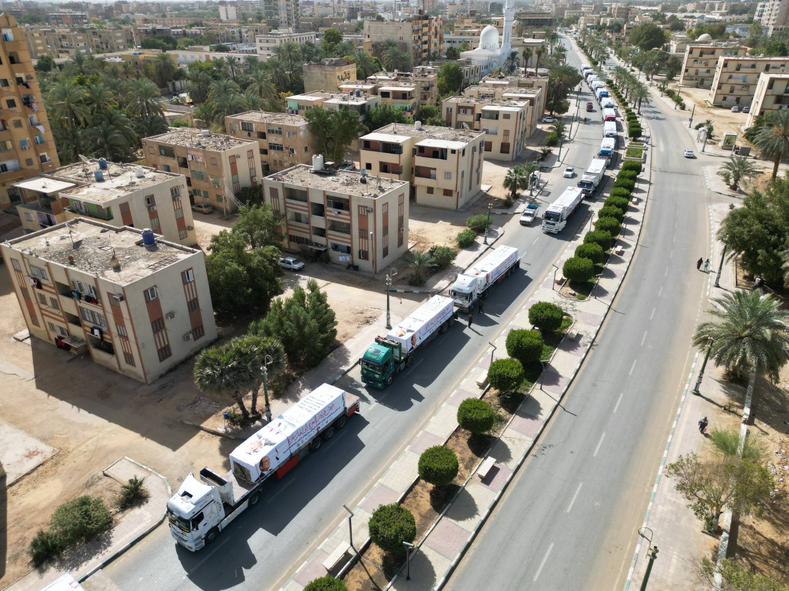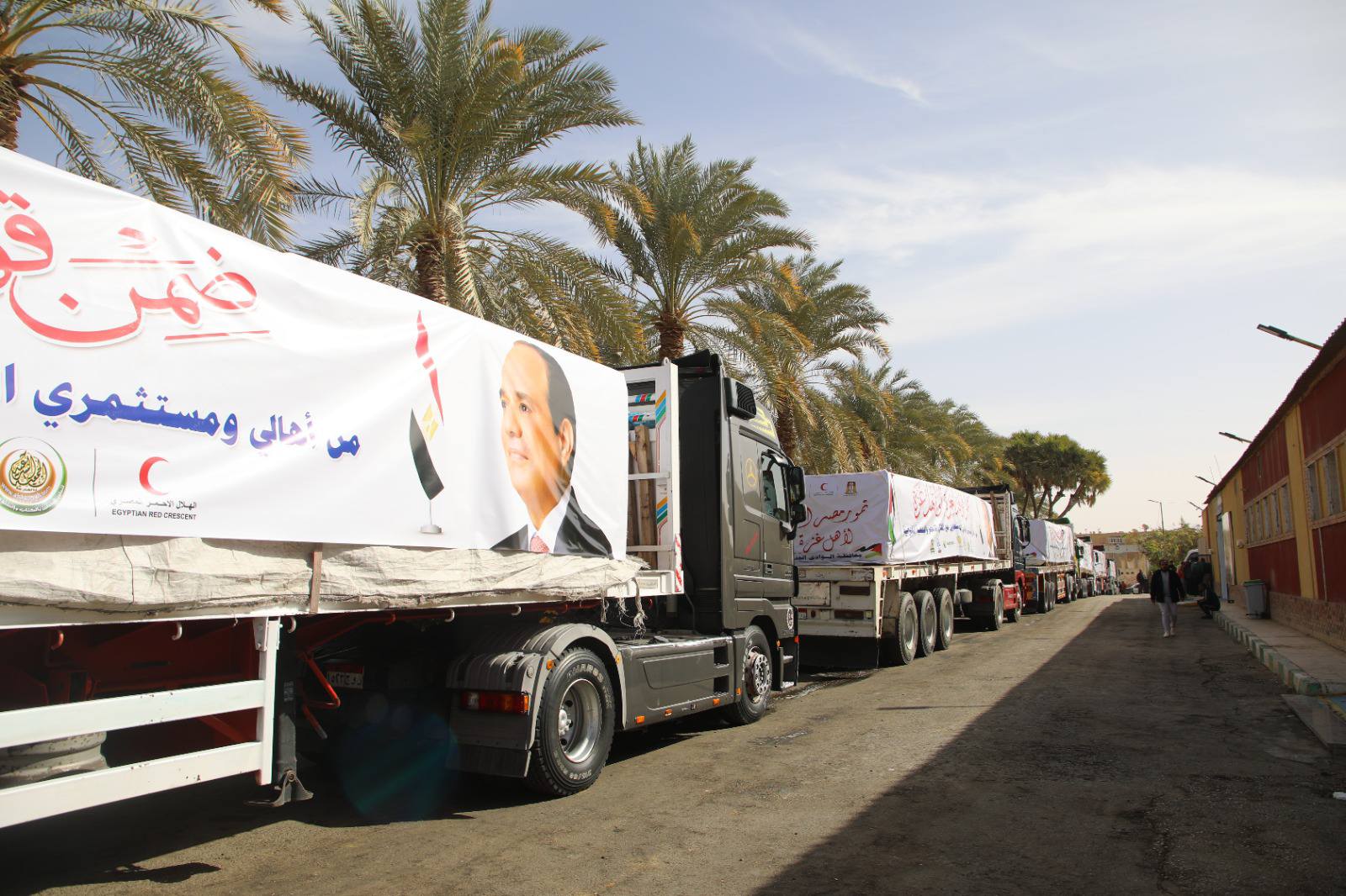ودشّن المحافظ ، انطلاق القوافل من أمام النصب التذكاري ومجمع المصالح الحكومية للخدمات الذكية بالوادي الجديد، مُصرّحًا أن القافلة تشمل (٢٥) حاوية تمور بإجمالي (٤٥٠ طن) مساعدات للأشقاء في فلسطين