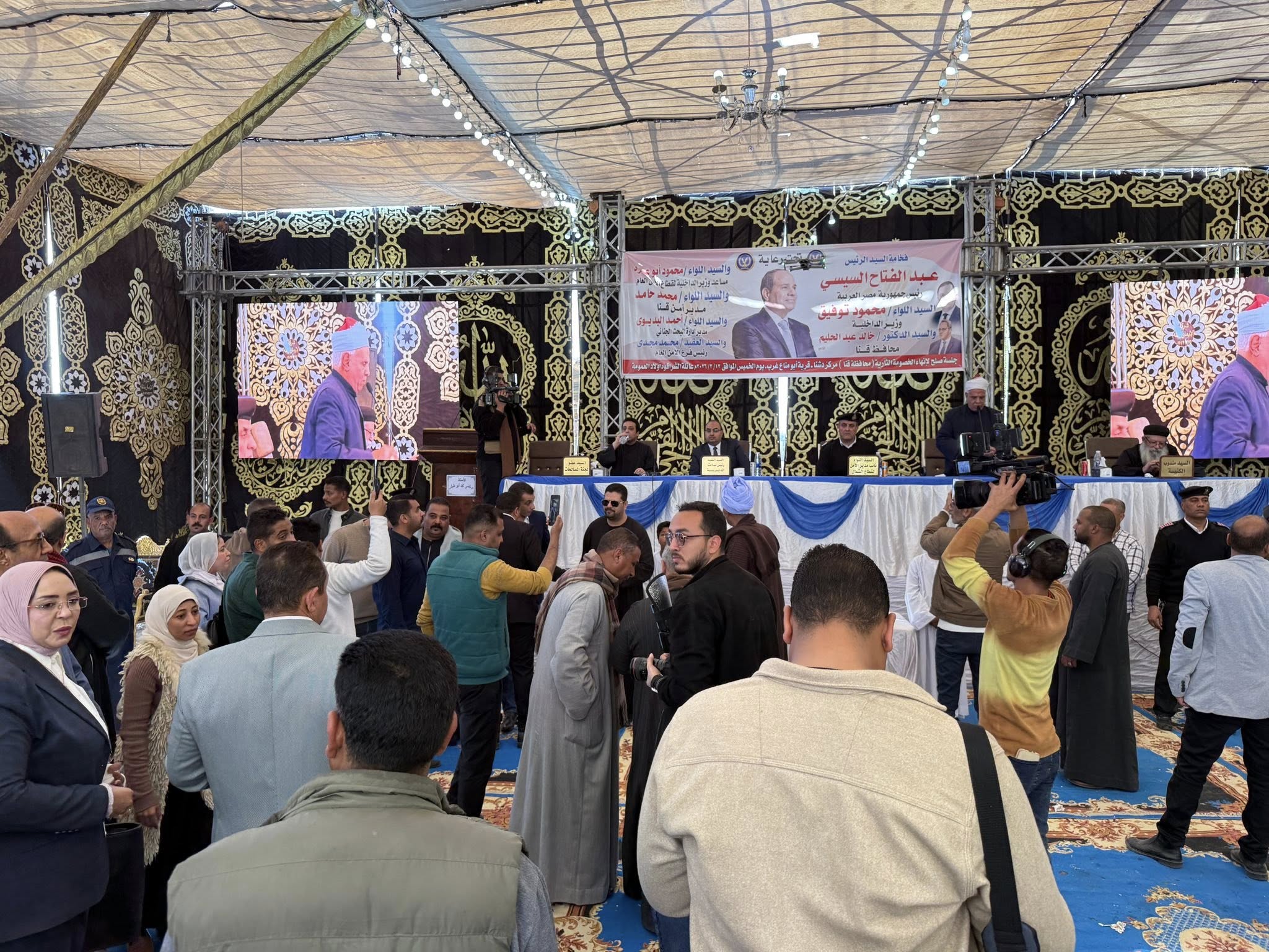 حضر جلسة الصلح التي أقيمت ، في سرادق كبير بمدينة دشنا، لجنة المصالحات، وعدد من القيادات الأمنية والتنفيذية والشعبية، وسط مشاركة واسعة من قبل أهالى القرية ، والقرى المجاورة، وتواجد مكثف لقوات الأمن.