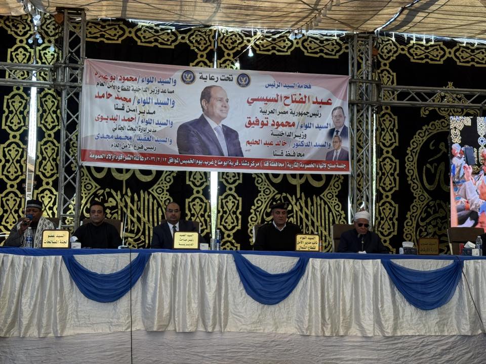 شهدت قرية أبومناع غرب التابعة لمركز دشنا، شمال محافظة قنا، اليوم الخميس، إنهاء خصومة ثأرية بين عائلتى أولاد محمد على وأولاد مصطفى مبارك، وذلك في وقت قياسى ، حيث تم الصلح بعد 3 أشهر من وقوع الحادث