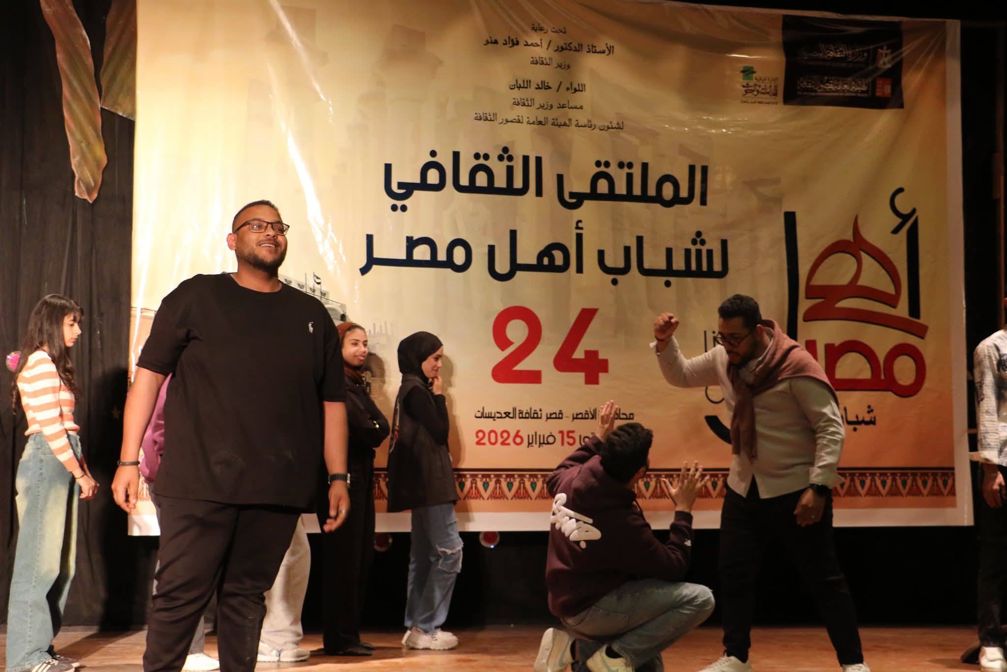 شهد قصر ثقافة حاجر العديسات بمحافظة الأقصر، اليوم، حفل ختام فعاليات الملتقى الثقافي الرابع والعشرين لشباب المحافظات الحدودية، ضمن مشروع «أهل مصر»، والذي أُقيم برعاية وزارة الثقافة، خلال الفترة من 9 حتى 15 فبراير الجاري، بمشاركة عدد من شباب المحافظات الحدودية، في إطار جهود الوزارة لدعم أبناء هذه المحافظات وتعزيز الوعي الثقافي ورعاية المواهب.