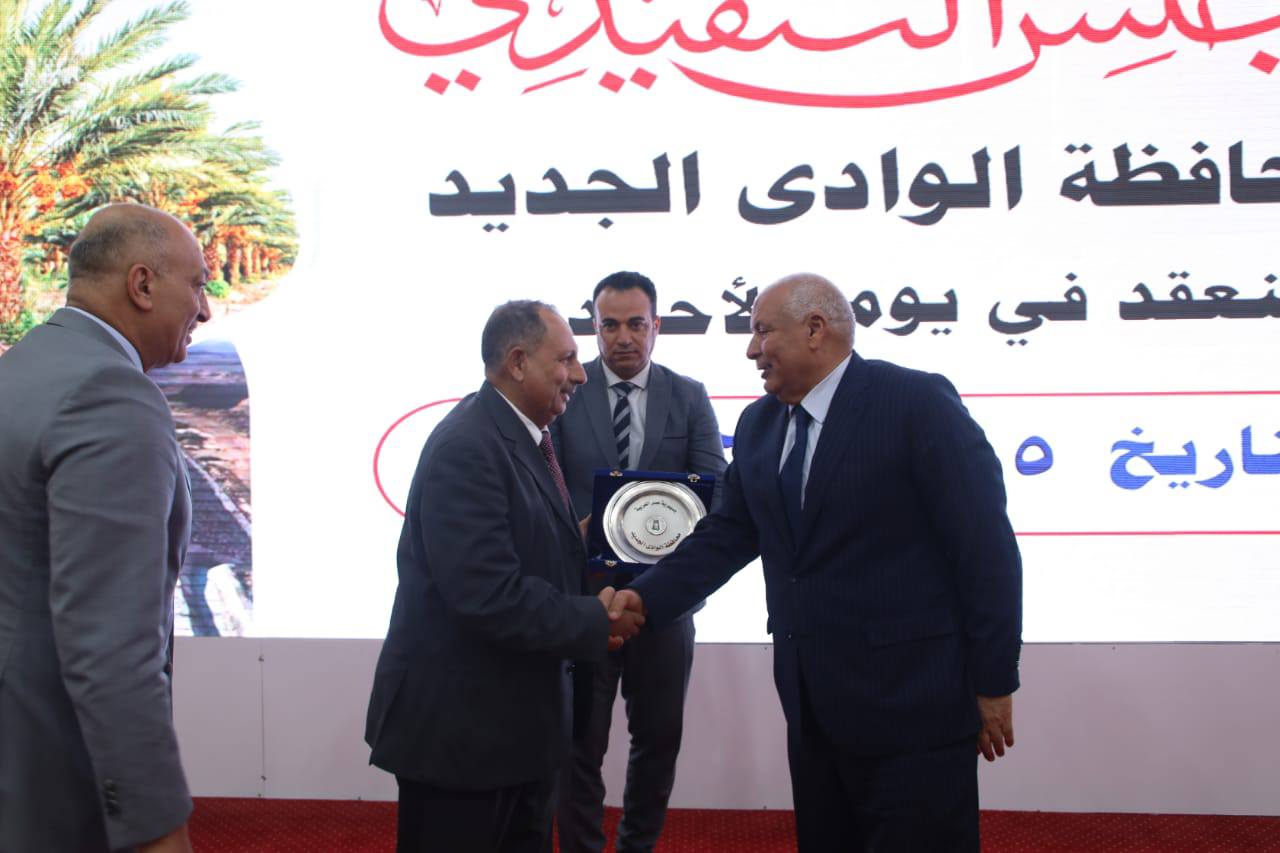 وعلى هامش الاجتماع، أهدى محافظ الوادي الجديد درع المحافظة للسيد فتحي أحمد مهني، مدير عام منطقة الضرائب العقارية السابق، بمناسبة بلوغه السن القانونية للتقاعد، تقديرًا لمسيرته المهنية وجهوده في دعم منظومة العمل المحلي، مؤكدًا حرص المحافظة على تكريم النماذج المتميزة ترسيخًا لقيم الوفاء والعرفان وتعزيزًا للأداء المؤسسي.