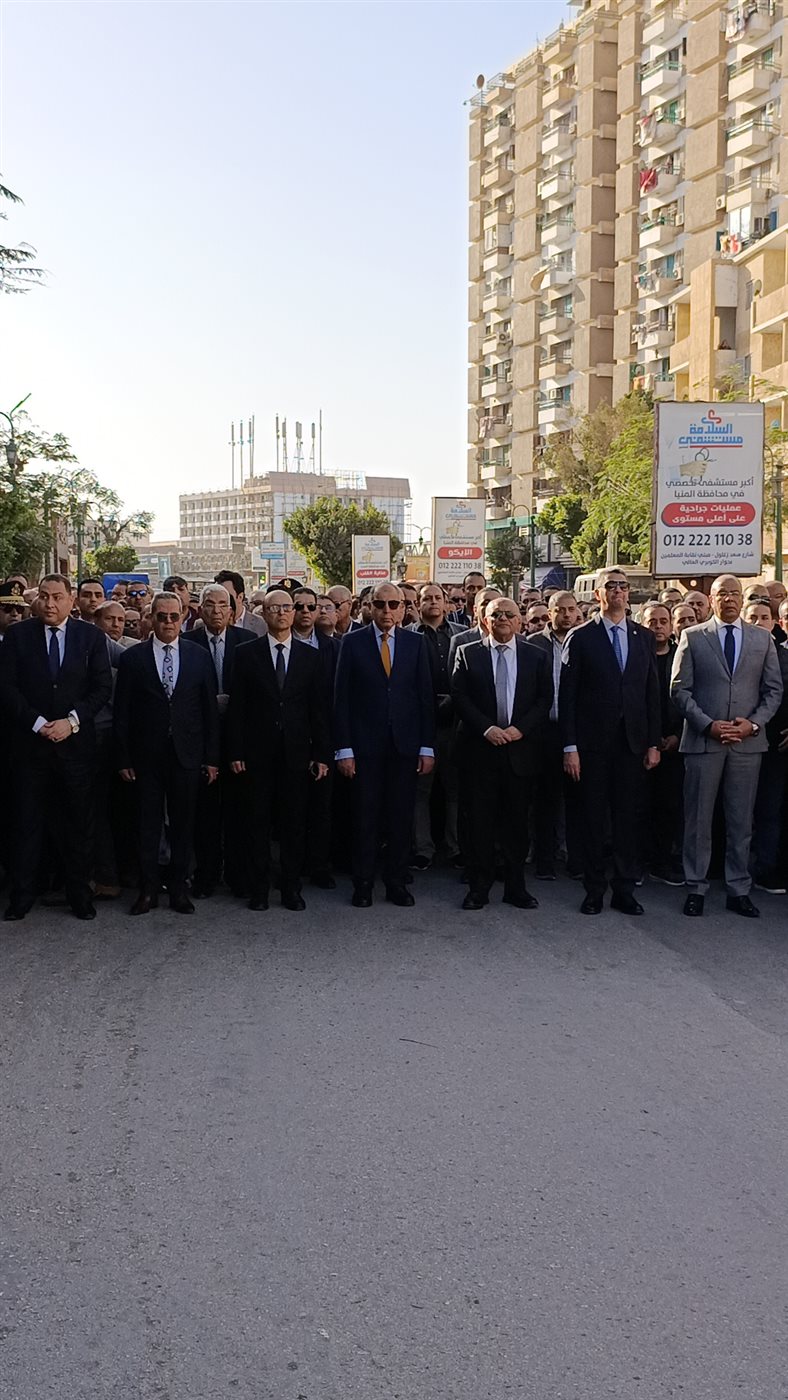 تقدّم الجنازة اللواء عماد كدواني، محافظ المنيا، واللواء حاتم حسن ، مدير الأمن، وعدد من القيادات التنفيذية والأمنية