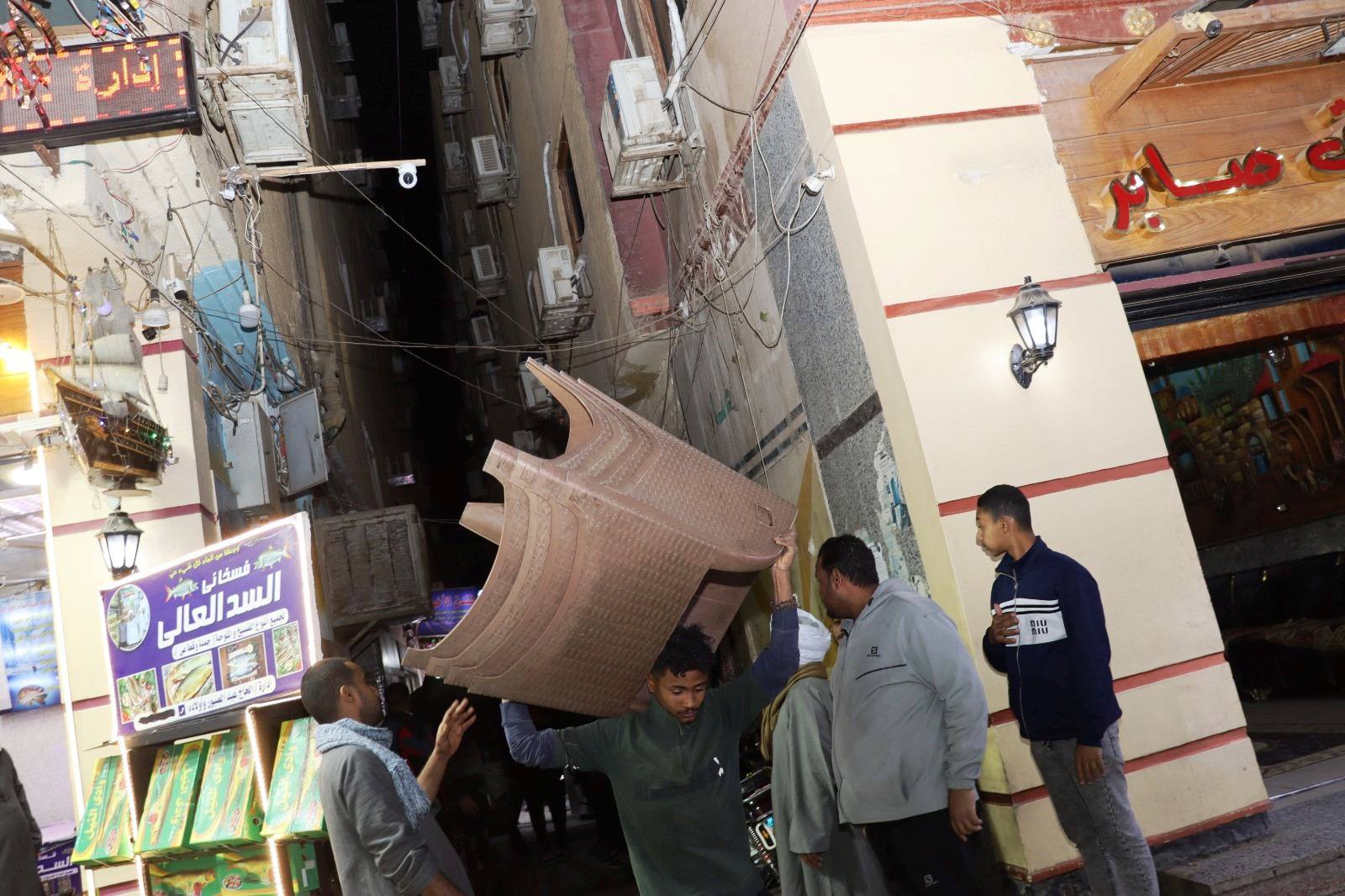 رفع 100 حالة إشغال في حملة مسائية لإعادة الإنضباط بالسوق السياحى القديم بأسوان