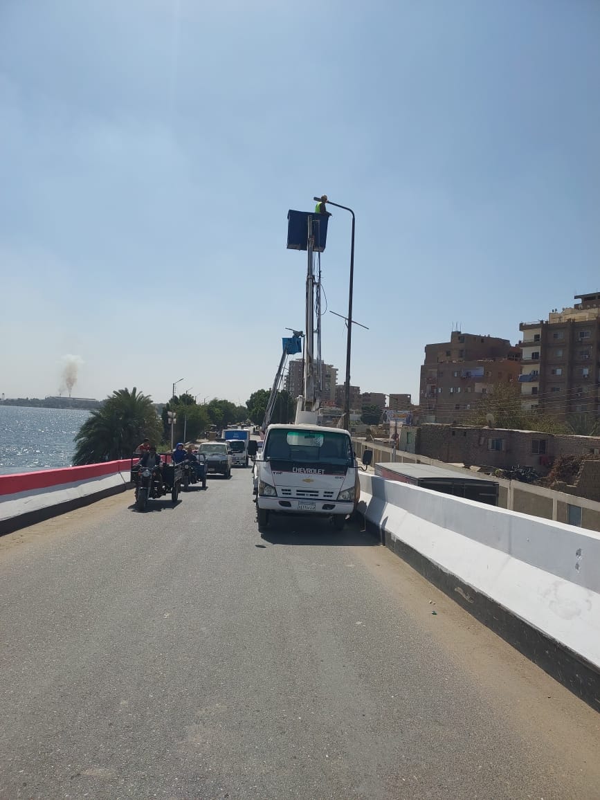 ومن جانبه، أوضح حسين الزمقان، رئيس مركز ومدينة نجع حمادي، أن جهود الحملة نجحت في تركيب ما يقرب من 1100 كشاف بعد إجراء أعمال الصيانة اللازمة لها، إلى جانب لحام 56 عمود إنارة بجسم الكوبري العلوي صعودا ونزولا لمنع تعرضها للانهيار أو السرقة، وحفاظا على الأرواح، وذلك تحت إشراف ميداني من المهندس مينا عاطف، المختص بقسم الكهرباء.