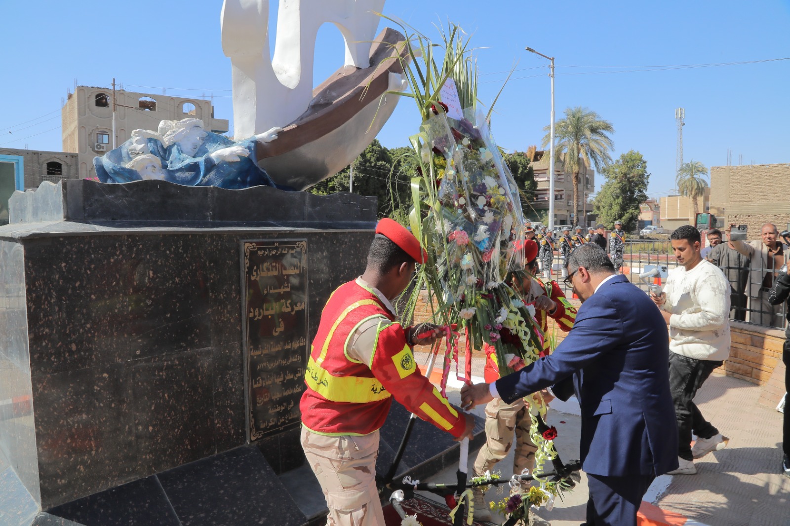 وضع اللواء دكتور مصطفى الببلاوي، محافظ قنا، إكليل من الزهور على النصب التذكاري لشهداء موقعة البارود، بمركز قفط، في إطار فعاليات الاحتفال بالعيد القومي للمحافظة، تخليدًا لذكرى أبطال المعركة التي جسدت شجاعة أبناء قنا في مواجهة الاحتلال الفرنسي عام 1799.