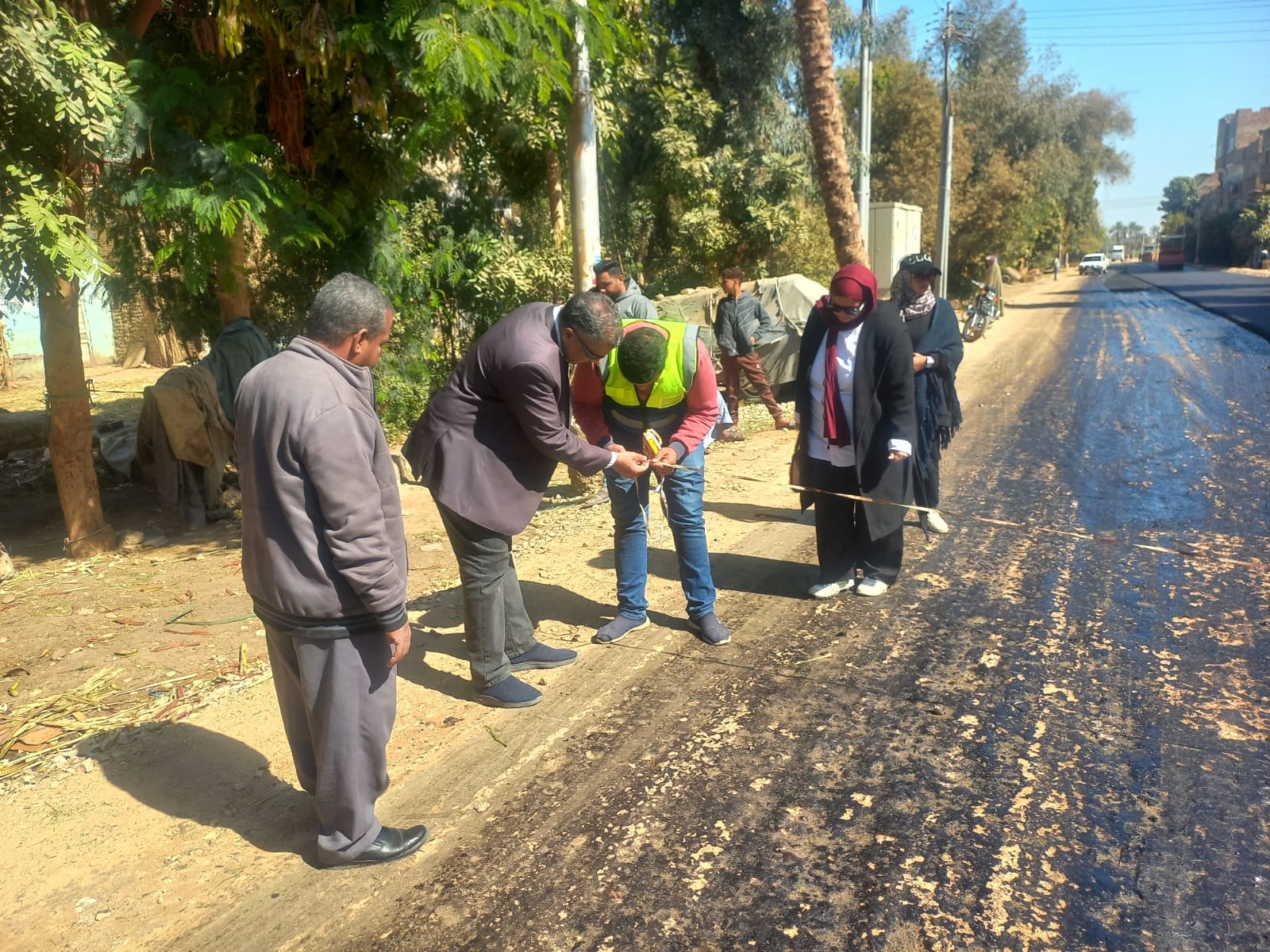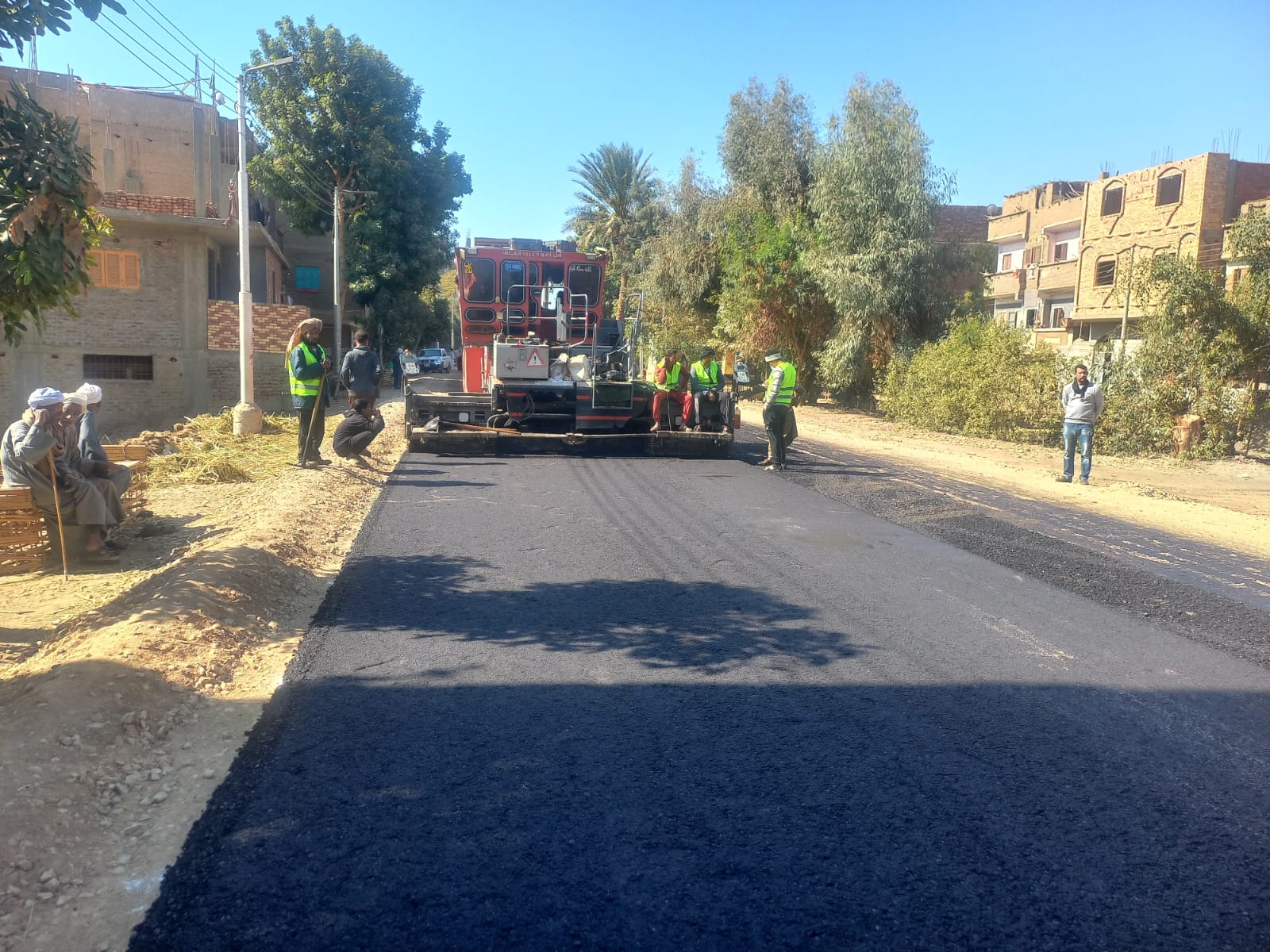 وتابع شاكر، مراحل وضع الطبقة الإسفلتية النهائية، وفرد الطبقة السطحية، واستمع إلى شرح مفصل حول مراحل التنفيذ، بدءا من أعمال التوسعة والتسوية والتمهيد مرورا برمي التربة الزلطية، وصولا إلى الطبقة الإسفلتية.