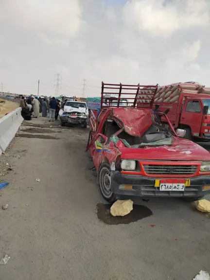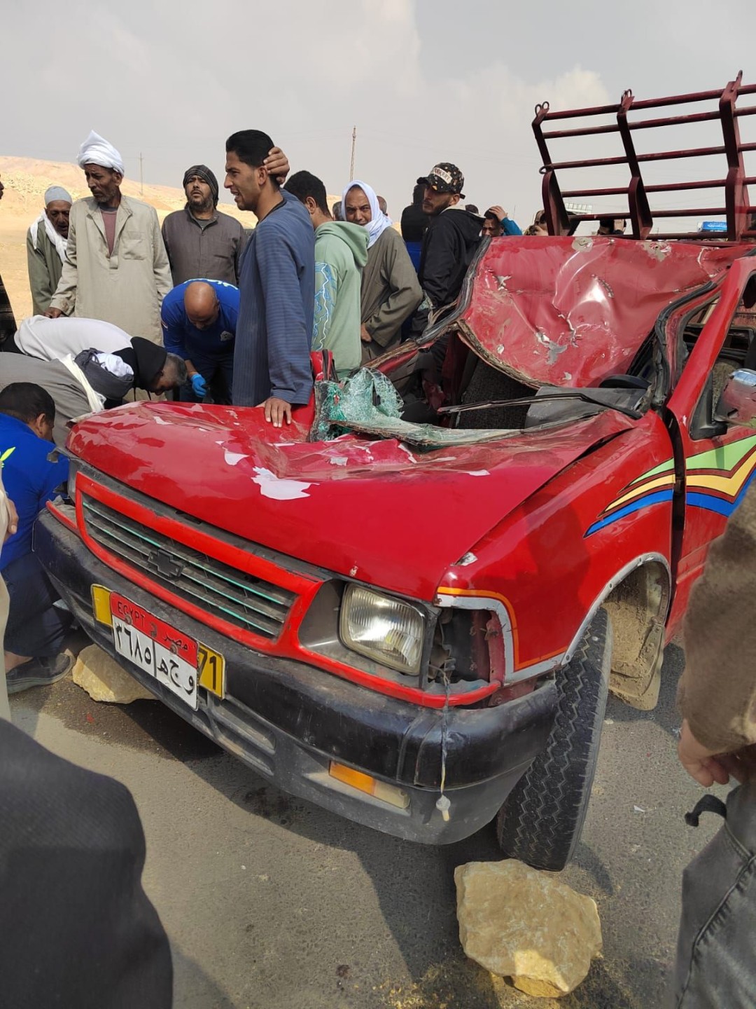 مصرع 3 عمال وإصابة 20 آخرين في تصادم سيارتي ربع نقل ببني سويف
