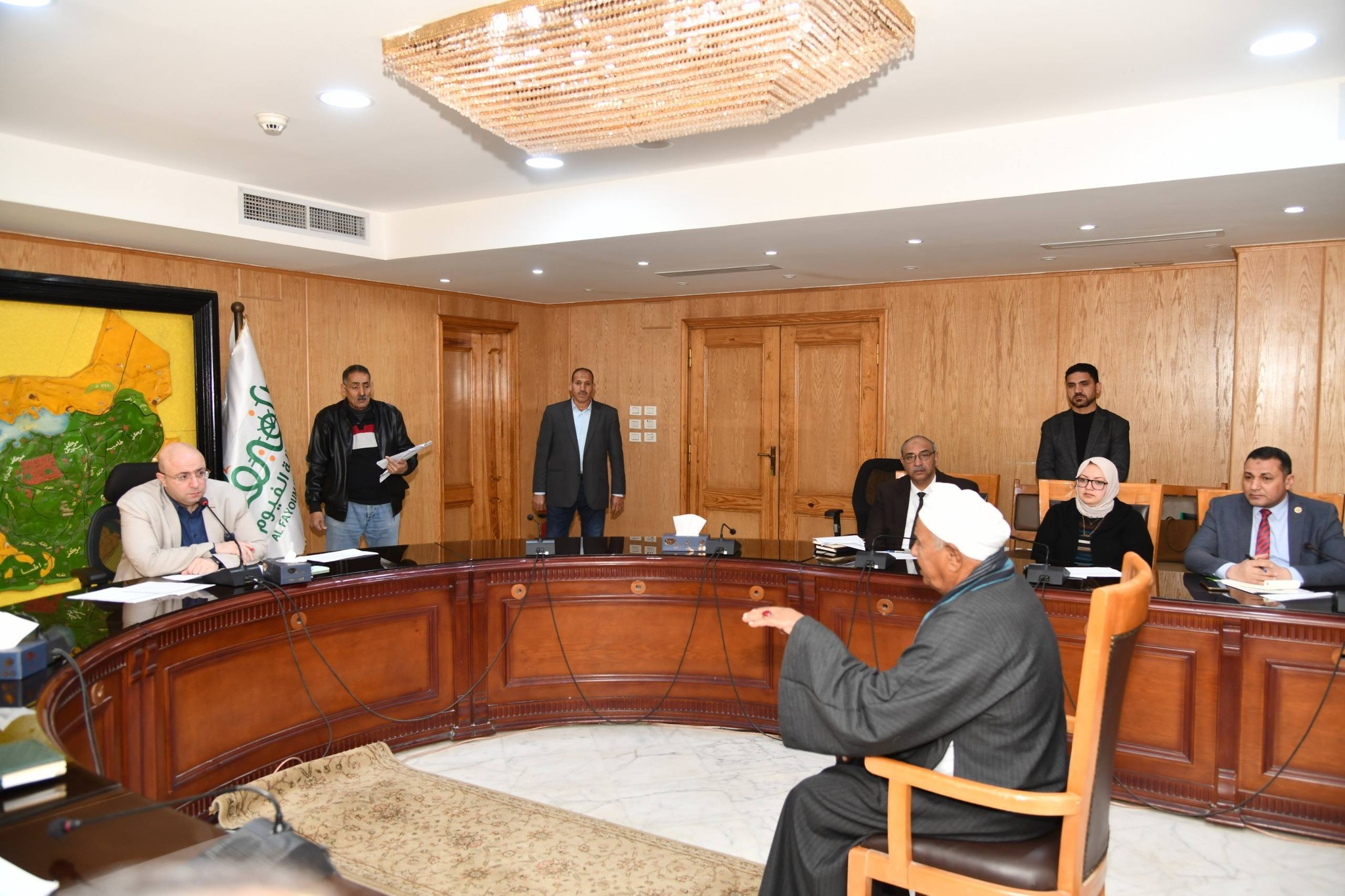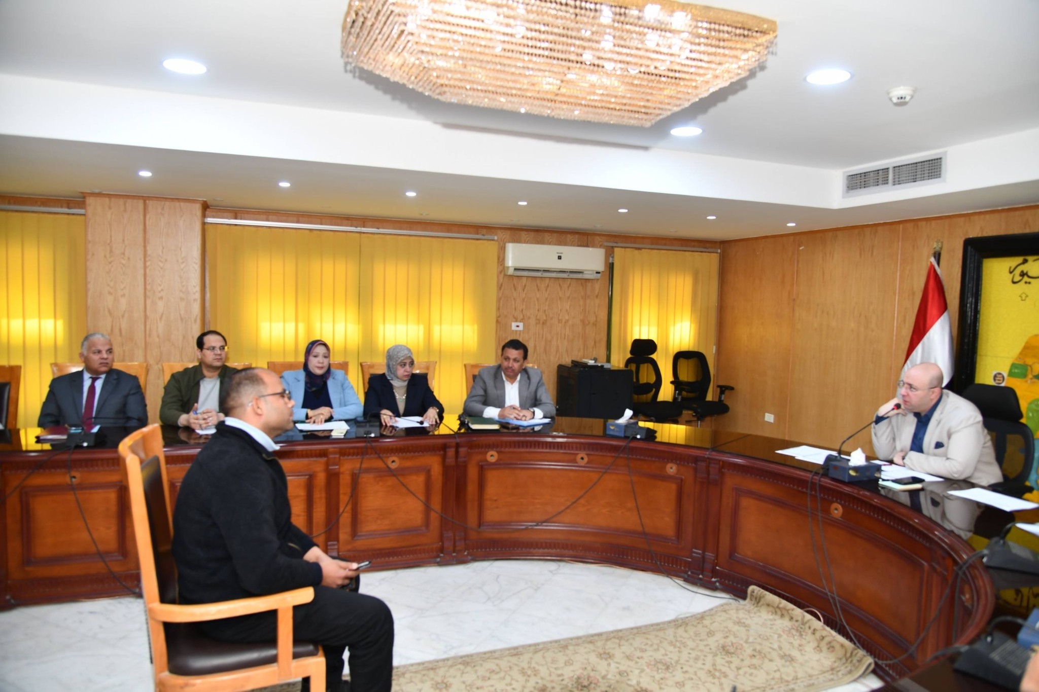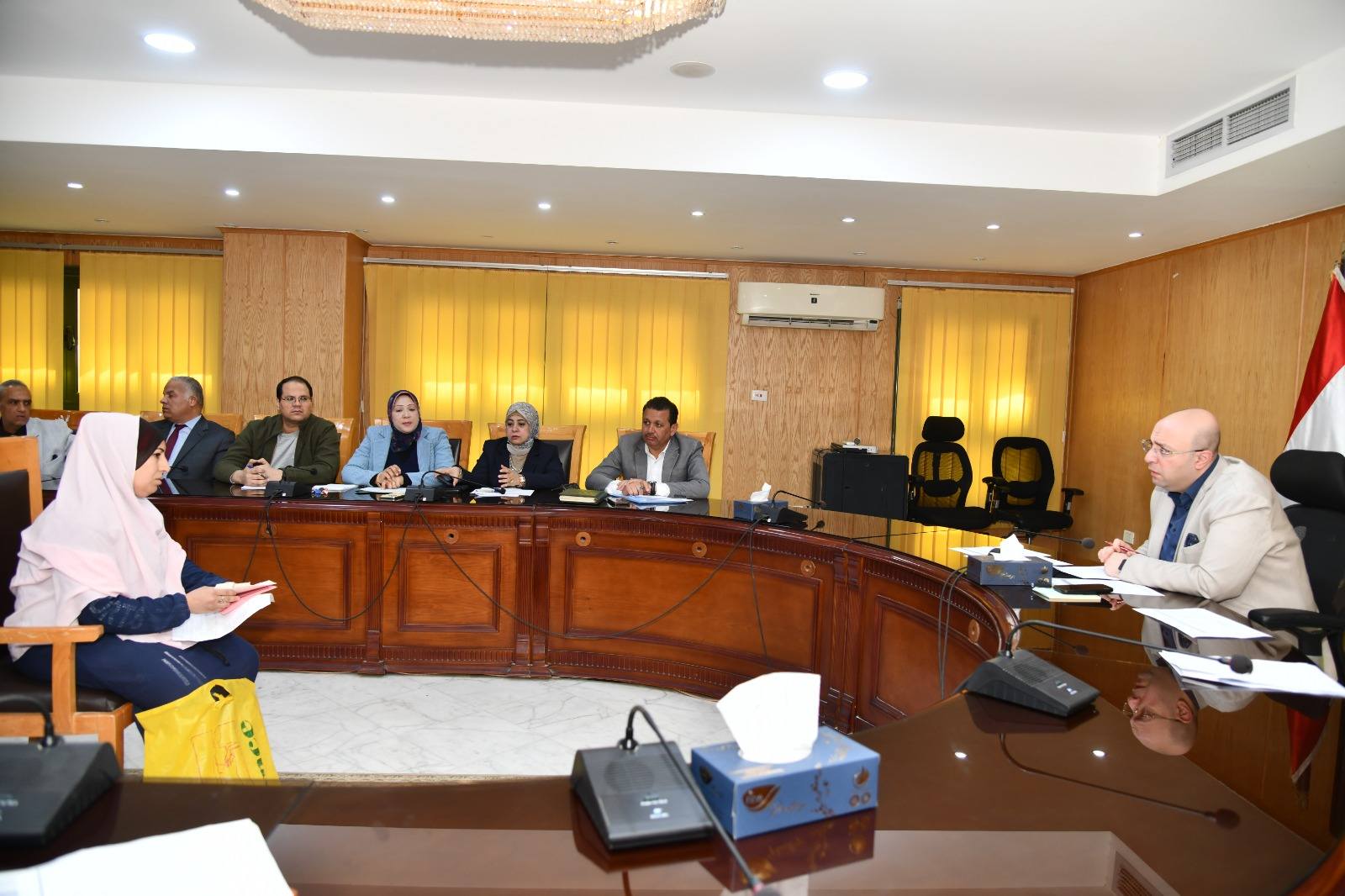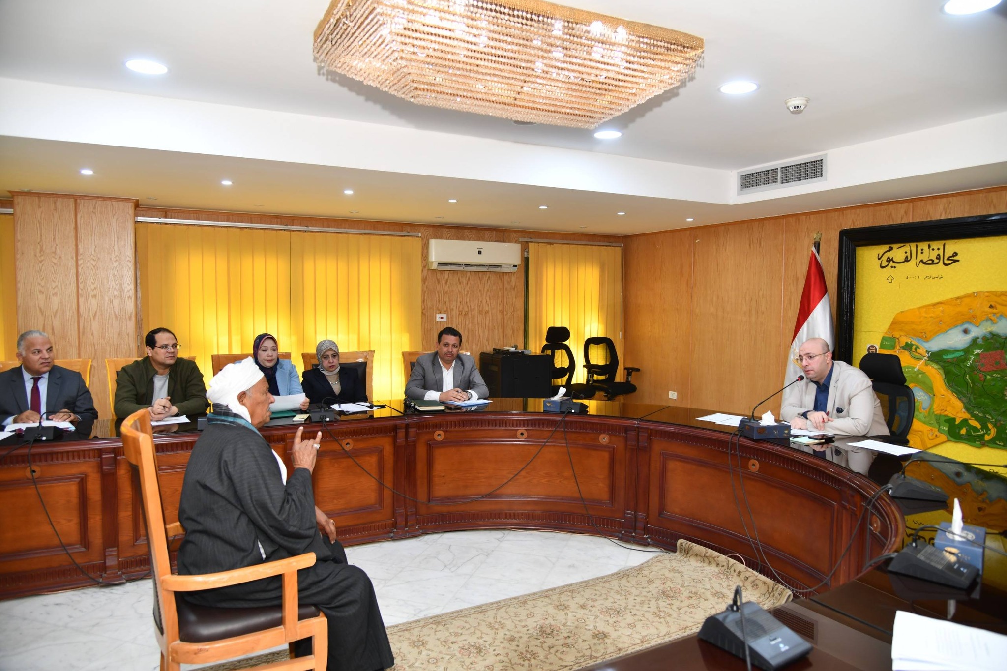 وخلال اللقاء، وجه محافظ الفيوم، مدير عام فرع الهيئة العامة للتأمين الصحي بالفيوم، بتوفير الرعاية الطبية والعلاجية اللازمة لعددٍ من الحالات المرضية، وسرعة عمل التدخلات الطبية اللازمة لطفل يعاني من تأخر بالكلام، وضعف بالنظر، بسبب ضمور وكهرباء زائدة بالمخ، مع عمل تقييم للإعاقات المتعددة، وإعادة اختبار الذكاء الخاص به، لبيان مدى إمكانية التحاقه بفصول الدمج بإحدى المدارس، وسرعة عرض طفلة أجريت لها عملية إزالة أورام سرطانية بالفك، على أخصائي جراحات الوجه والفكين بمستشفى التأمين الصحي، لبيان العلاج اللازم لها، وعمل الفحوصات اللازمة لها بشأن تضخم غدتها الدرقية.