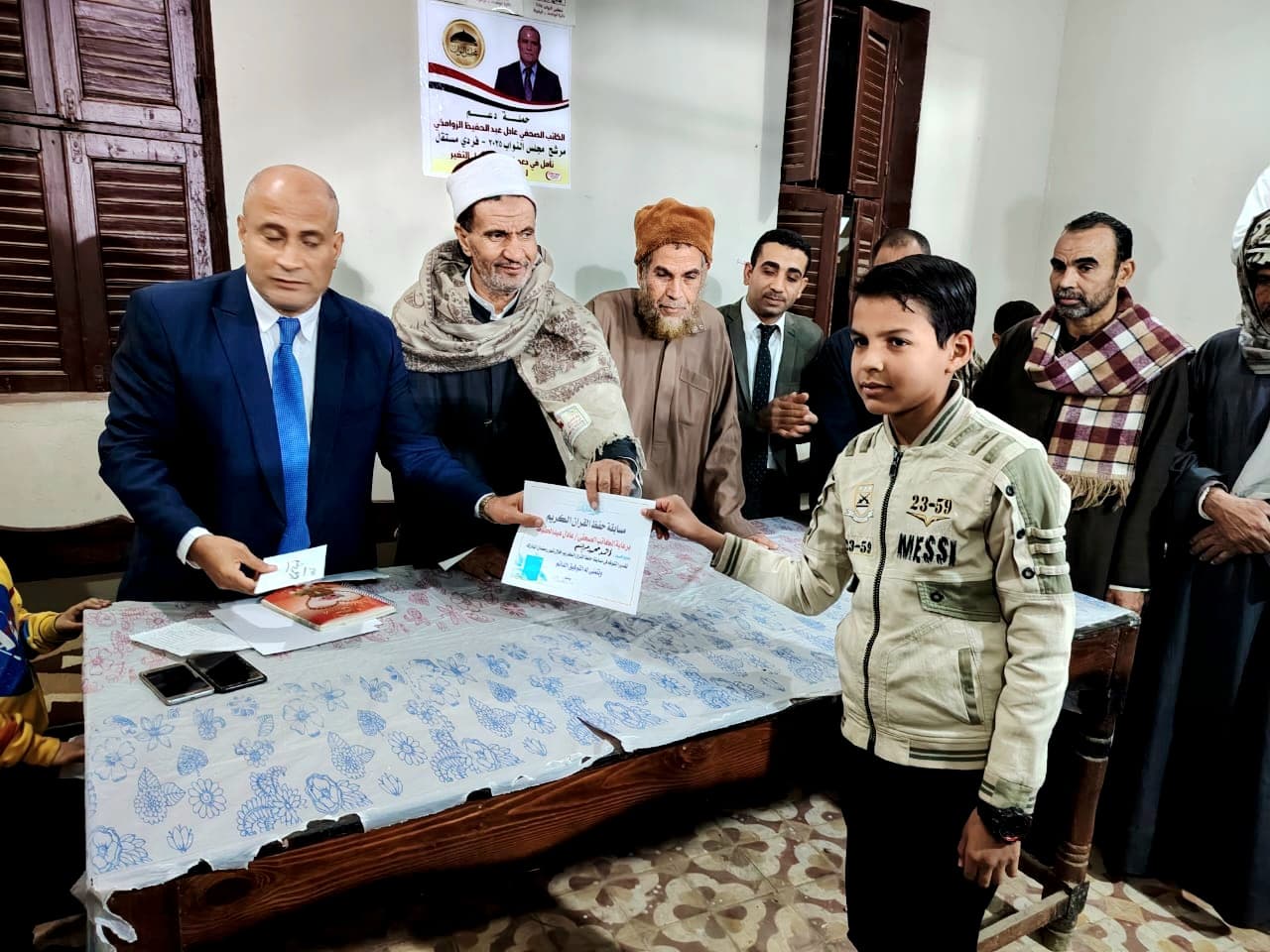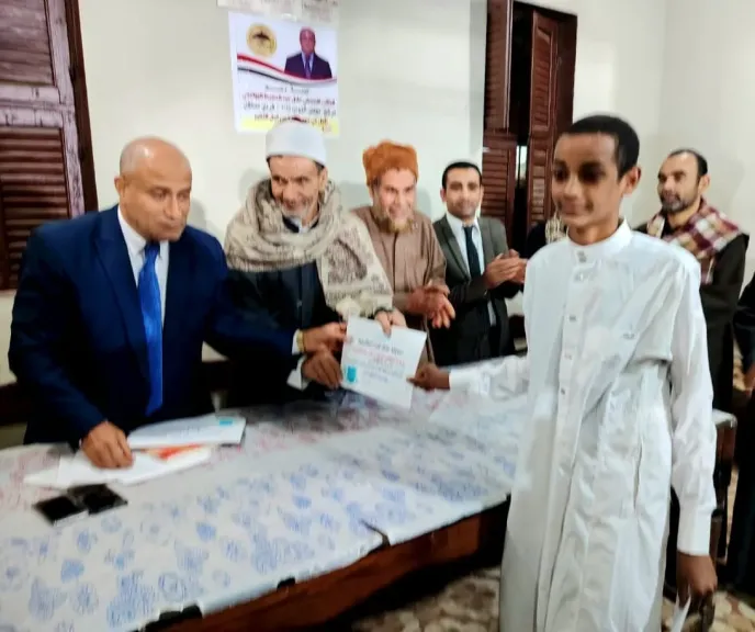 شهد حفل ختام المسابقة ، لفيف من الأهالي ورجال الازهر الشريف والتربية والتعليم والاعلام , وتم توزيع الجوائز المادية وشهادات التقدير على الفائزين