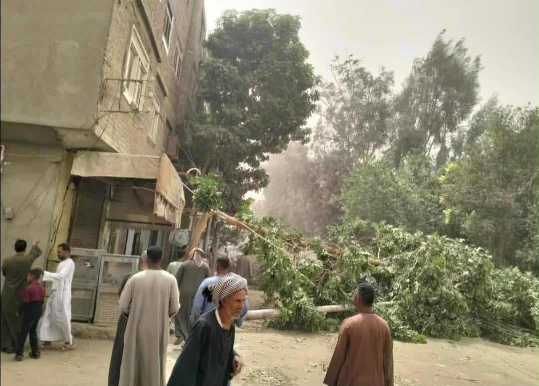 العاصفة الترابية تتسبب في سقوط عمود إنارة وأشجار جنوب قنا