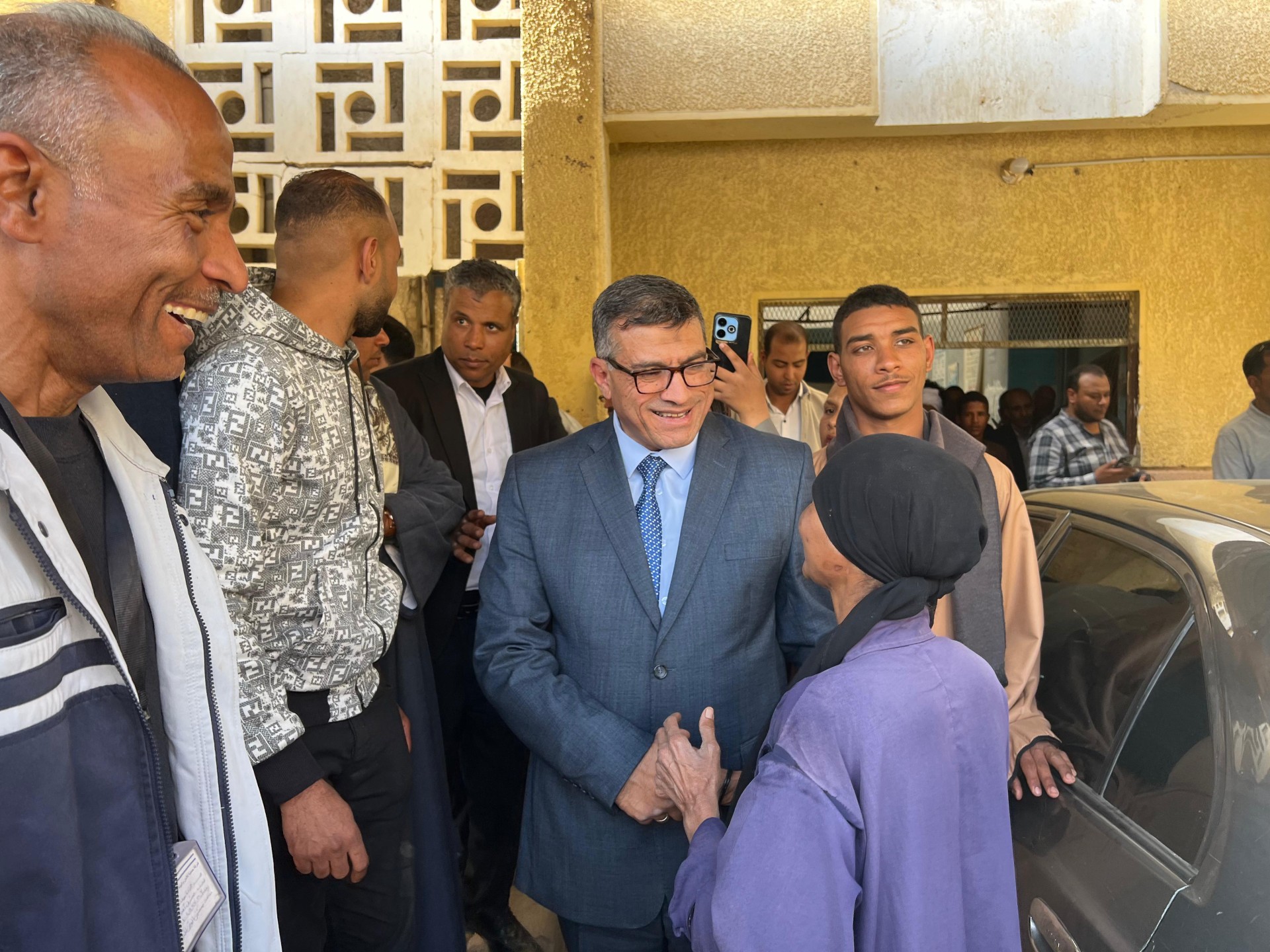 وفي مستهل زيارته لمركز الوقف، حرص محافظ قنا على طرق عدد من المنازل لتهنئة الأهالي بعيد الفطر المبارك.