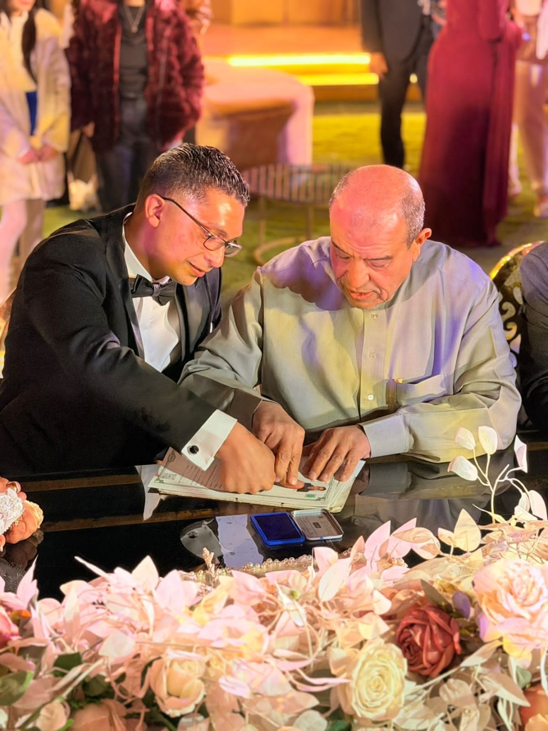 وأن يرزقهما الذرية الصالحة، متمنين لهما حياة زوجية سعيدة