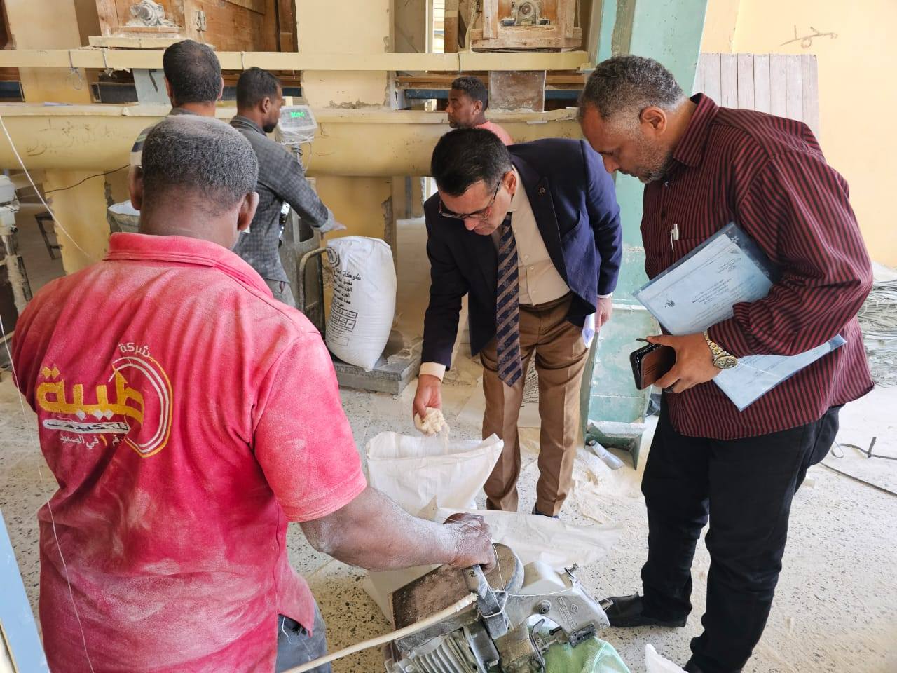 وشملت الجولة تفقد كافة مراحل التشغيل بداية من تشوين الأقماح، مرورًا بمراحل الغسيل والتجفيف والطحن، وصولًا إلى إضافة البريمكس والغربلة والوزن والتعبئة.