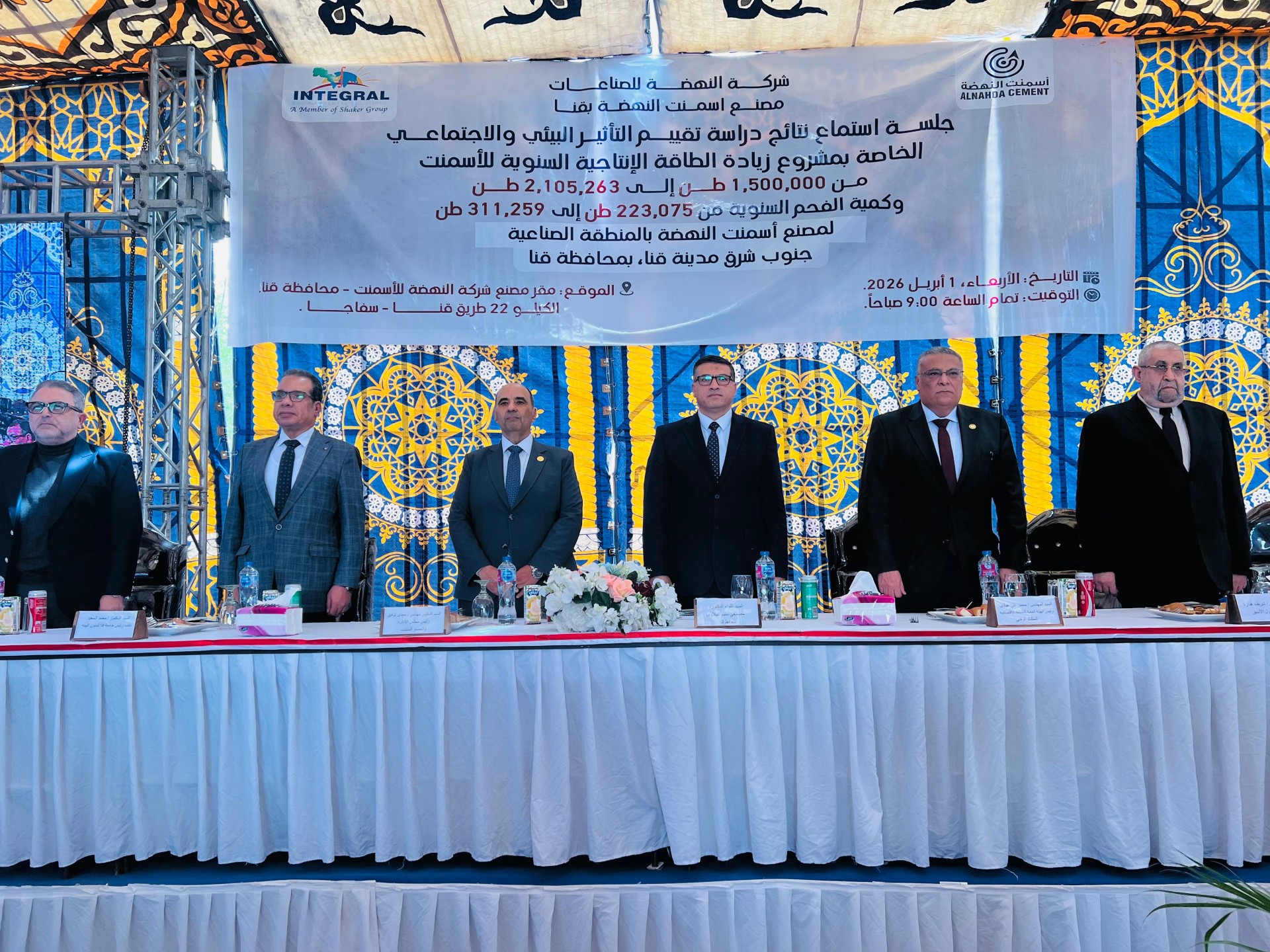 شهد اللواء دكتور مصطفى الببلاوي، محافظ قنا، فعاليات جلسة الاستماع العلنية لنتائج دراسة تقييم الأثر البيئي والاجتماعي لمشروع زيادة الطاقة الإنتاجية السنوية لمصنع "أسمنت النهضة" بالمنطقة الصناعية جنوب شرق مدينة قنا.