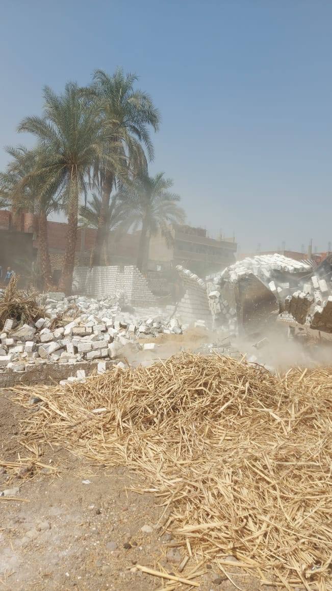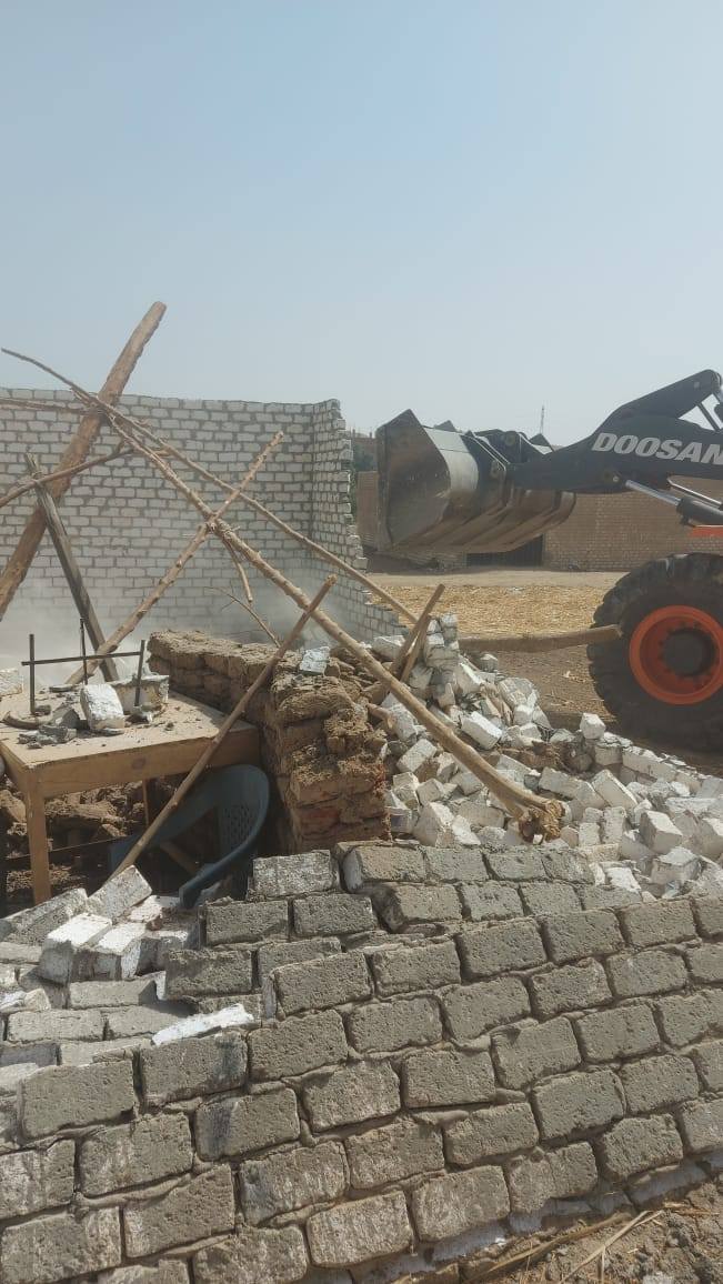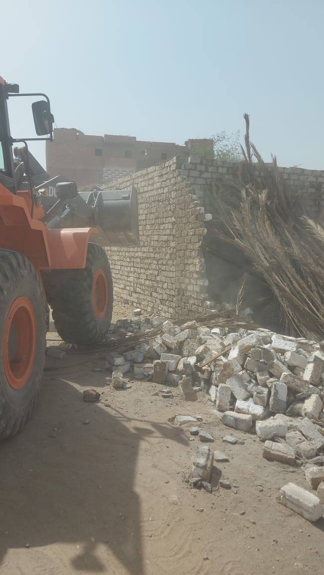 إزالة 9 حالات تعدي بالبناء خلال حملة مكبرة بمدينة الطود بالأقصر