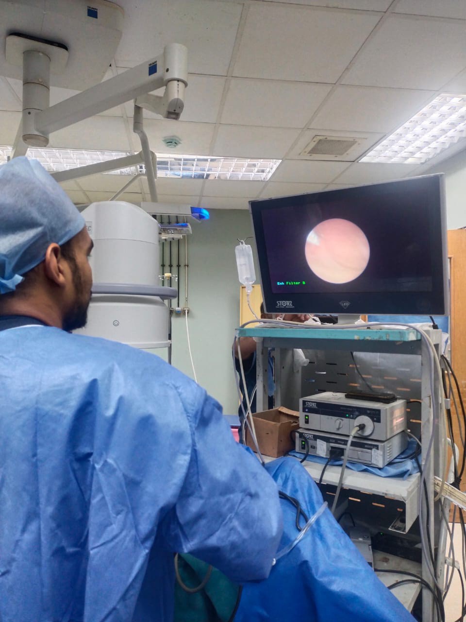 كان قسم جراحة المسالك البولية، قد استقبل حالة طارئة لسيدة حامل في الشهر السابع، وصلت المستشفى وهي تعاني من انسداد بالكليتين أدى إلى توقف البول لمدة أربعة أيام، مع ارتفاع شديد في وظائف الكلى وصل إلى كرياتينين 8، إضافة إلى أنيميا شديدة بمستوى هيموجلوبين 4، ما جعل حالتها حرجة للغاية ومهددة للحياة.