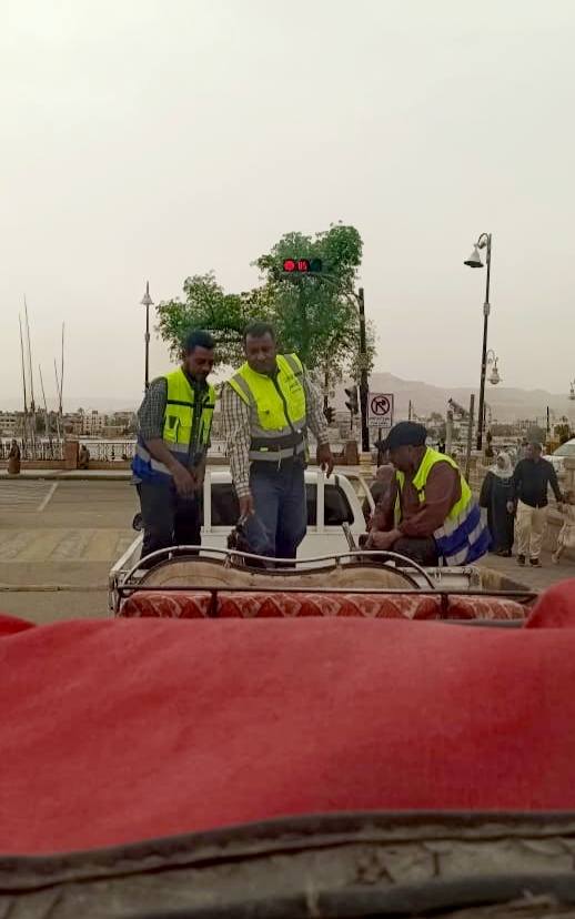 ورصدت الحملة، قيام قائد إحدى عربات الحنطور المخالفة بالسير عشوائياً معترضاً الطريق بمنطقة مرحبا، وعلى الفور تم توقيف العربة حسب التعليمات المنظمة، وتم التحفظ عليها وإتخاذ كافة الإجراءات القانونية حيال المخالف.