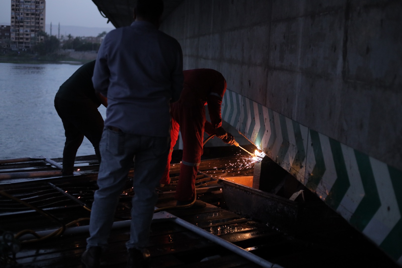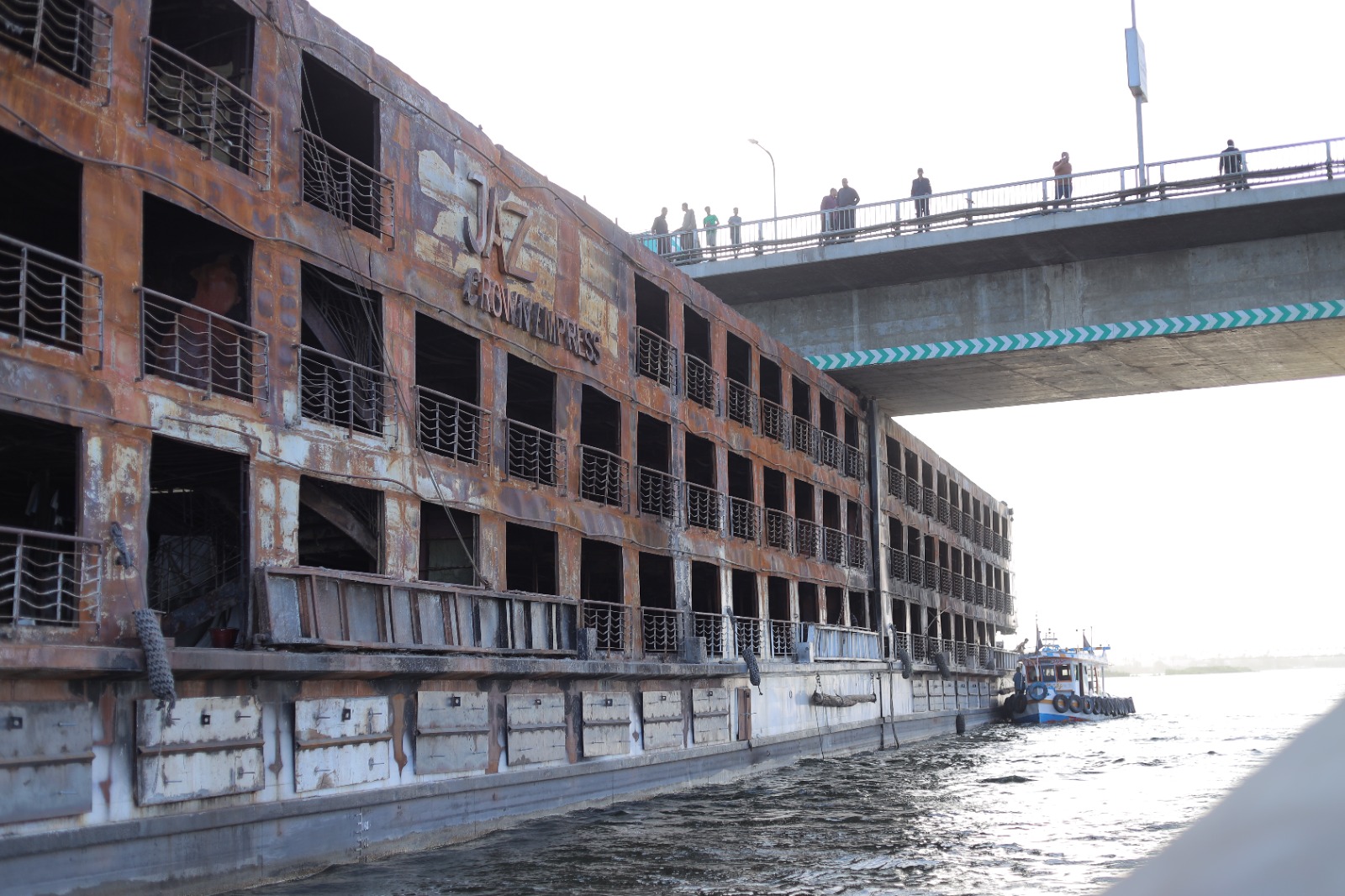 نجاح جهود تسيير باخرة نيلية علقت في الكمرة الرئيسية لكوبري دندرة بقنا