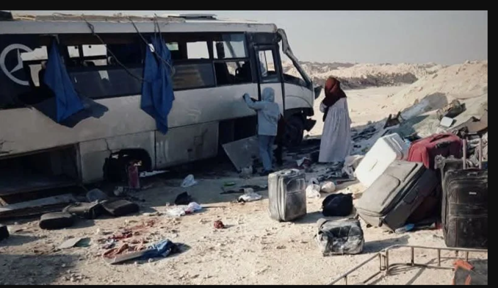 انقلاب اتوبيس بالطريق الصحراوي الشرقي