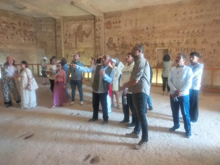 وشهدت الزيارة جولة داخل المقابر الأثرية بمنطقة بني حسن، حيث تعرّف المشاركون على مشاهد الحياة اليومية والأنشطة المختلفة المنحوتة على جدران المقابر، من بينها مناظر الألعاب الرياضية التي تميز آثار بني حسن، وتعكس جانبًا من تطور الحضارة المصرية القديمة، إلى جانب الاستماع لشرح تاريخي يوثق عراقة الموقع وأهميته عبر العصور.